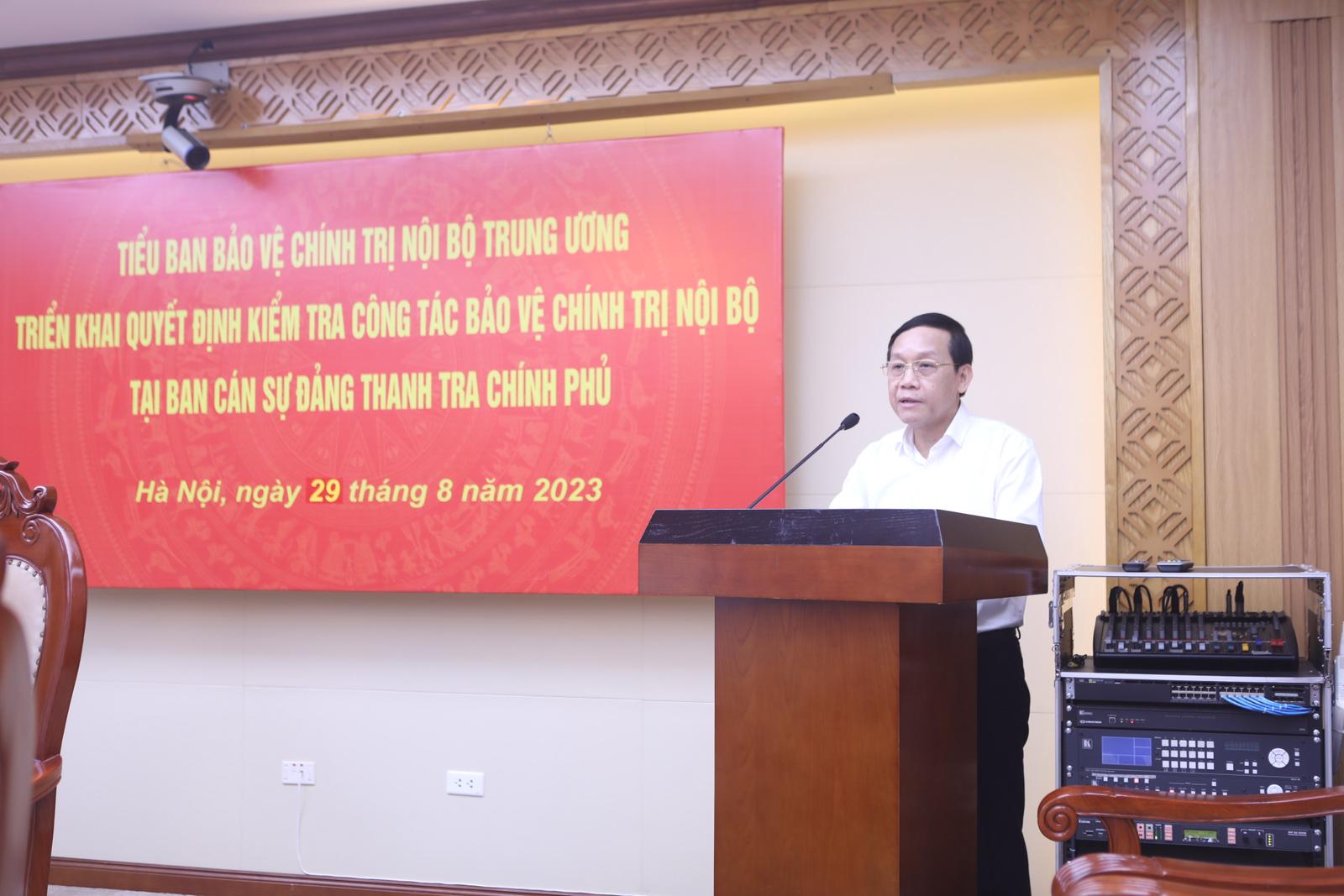 Tại hội nghị, đồng chí Nguyễn Thanh Hải, Phó Trưởng Ban Nội chính Trung ương, Phó Trưởng Đoàn Kiểm tra công bố quyết định thành lập đoàn kiểm tra; kế hoạch, thời gian kiểm tra tại Ban Cán sự Đảng Thanh tra Chính phủ.
