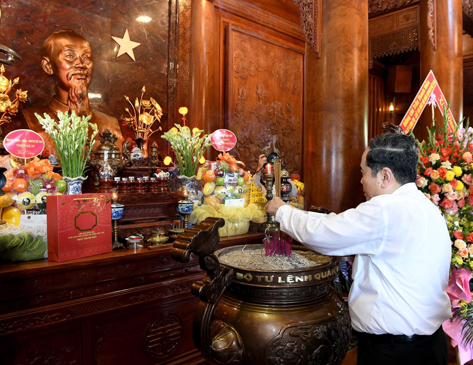 Chủ tịch Quốc hội Trần Thanh Mẫn dâng hương tưởng nhớ Chủ tịch Hồ Chí Minh tại Khu Di tích quốc gia đặc biệt Kim Liên. Ảnh: QH