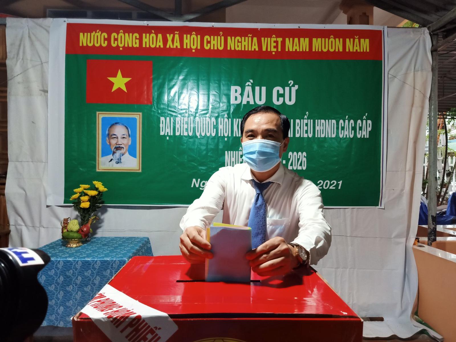 Chủ tịch UBND TP Phú Quốc Huỳnh Quang Hưng bỏ phiếu tại tổ bầu cử số 13, thị trấn Dương Đông, TP Phú Quốc. Ảnh: CTV