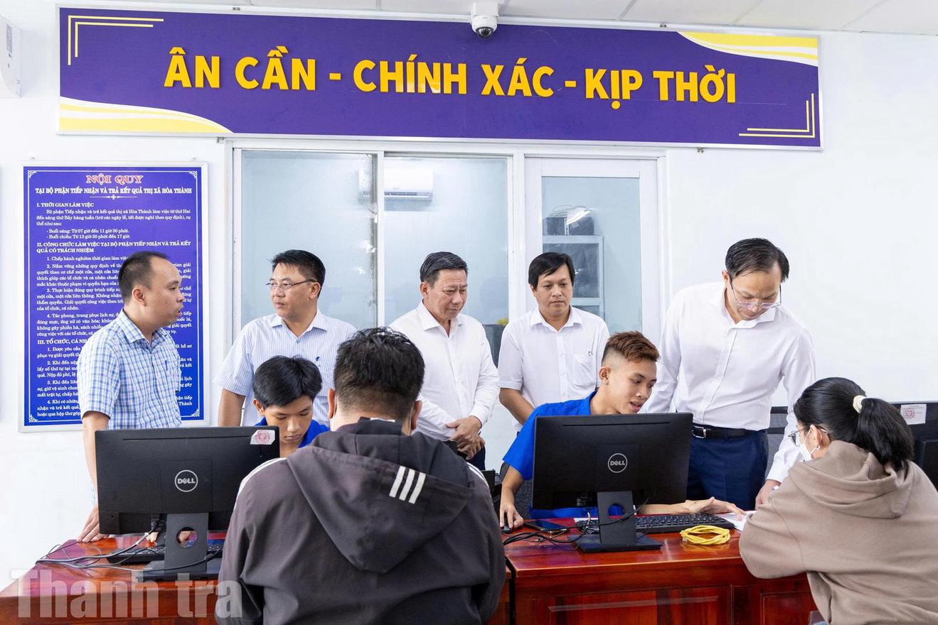 Đoàn công tác của Bộ Tư pháp kiểm tra, đánh giá cao nỗ lực của phường Long Hoa, tỉnh Tây Ninh sau sáp nhập, các thủ tục được thực hiện đúng quy định.. Ảnh: Thu Huyền