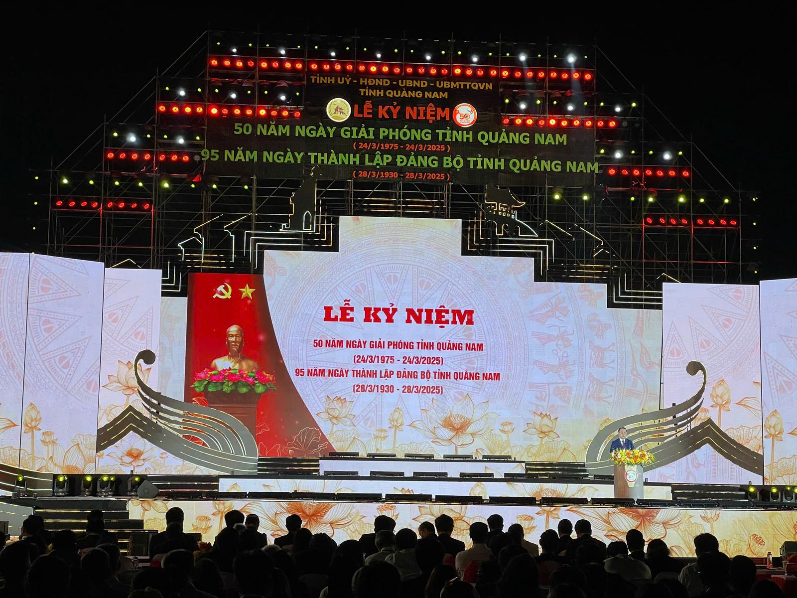 (Thanh tra) - Tối qua (24/3), Tỉnh Quảng Nam tổ chức trọng thể Lễ kỷ niệm 50 năm ngày giải phóng tỉnh Quảng Nam (24/3/1975 - 24/3/2025), 95 năm ngày thành lập Đảng bộ tỉnh Quảng Nam (28/3/1930 - 28/3/2025) và chương trình nghệ thuật đặc biệt "Quảng Nam - Vang mãi hùng ca".