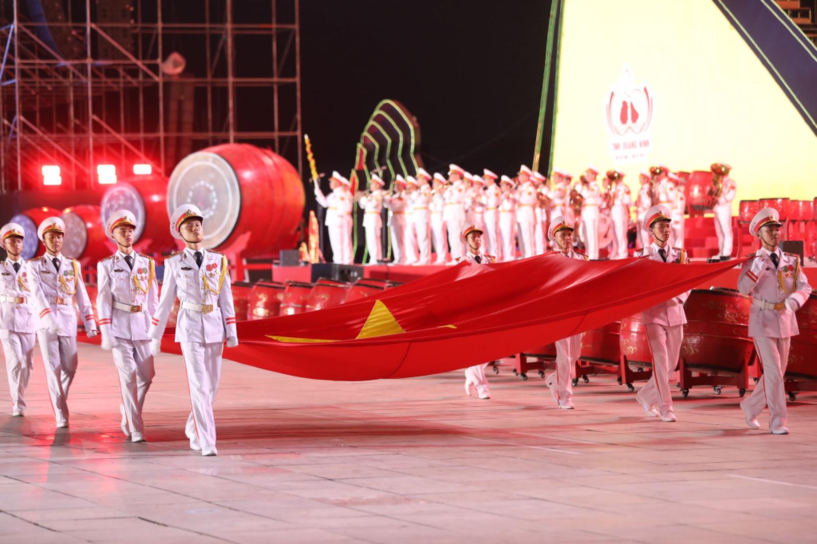 Màn trống hội có quy mô lớn nhất Việt Nam, được dàn dựng công phu với hơn 600 người tham gia. Ảnh: T.T