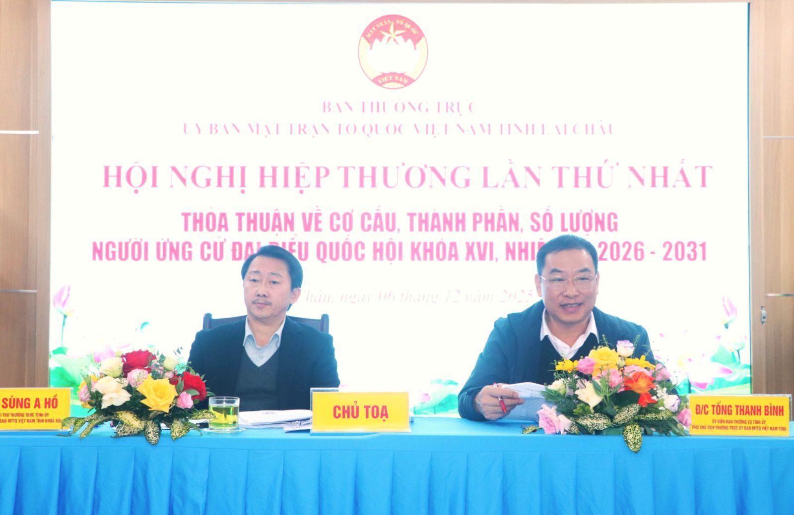 (Thanh tra) - Sáng 6/12, Ban Thường trực Ủy ban Mặt trận Tổ quốc (MTTQ) Việt Nam tỉnh Lai Châu đã tổ chức Hội nghị hiệp thương lần thứ nhất nhằm thỏa thuận về cơ cấu, thành phần và số lượng người được giới thiệu ứng cử đại biểu Quốc hội khóa XVI, nhiệm kỳ 2026–2031.