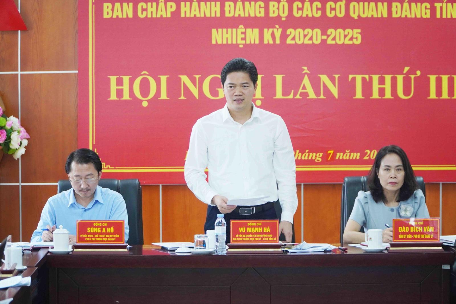 Phát biểu kết luận Hội nghị, ông Vũ Mạnh Hà, Phó Bí thư Thường trực Tỉnh ủy, Bí thư Đảng ủy Các cơ quan Đảng tỉnh ghi nhận, đánh giá cao những kết quả đã đạt được; đồng thời nhấn mạnh: Các chi bộ, đảng bộ trực thuộc, đặc biệt là những đơn vị mới sáp nhập, cần phát huy cao độ tinh thần trách nhiệm, quyết tâm tổ chức đại hội sớm, bảo đảm chất lượng và tiến độ, hoàn thành dứt điểm trước ngày 30/7/2025.