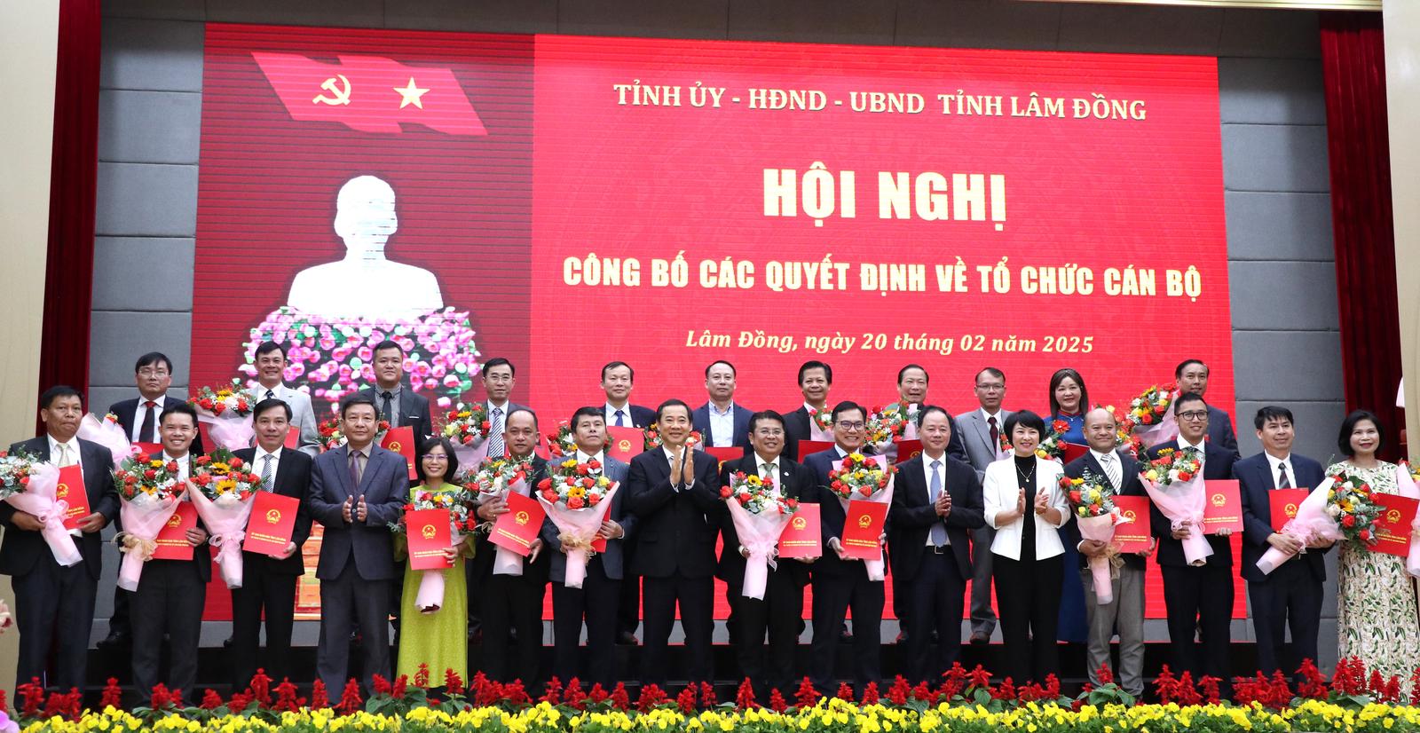 UBND tỉnh Lâm Đồng trao các quyết định bổ nhiệm Phó Giám đốc các sở mới thành lập cho 24 người. Ảnh: Vũ Linh