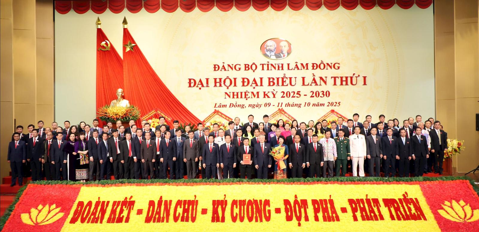Ban Chấp hành Đảng bộ tỉnh Lâm Đồng nhiệm kỳ 2025 - 2030 ra mắt đại hội. Ảnh: Vũ Linh