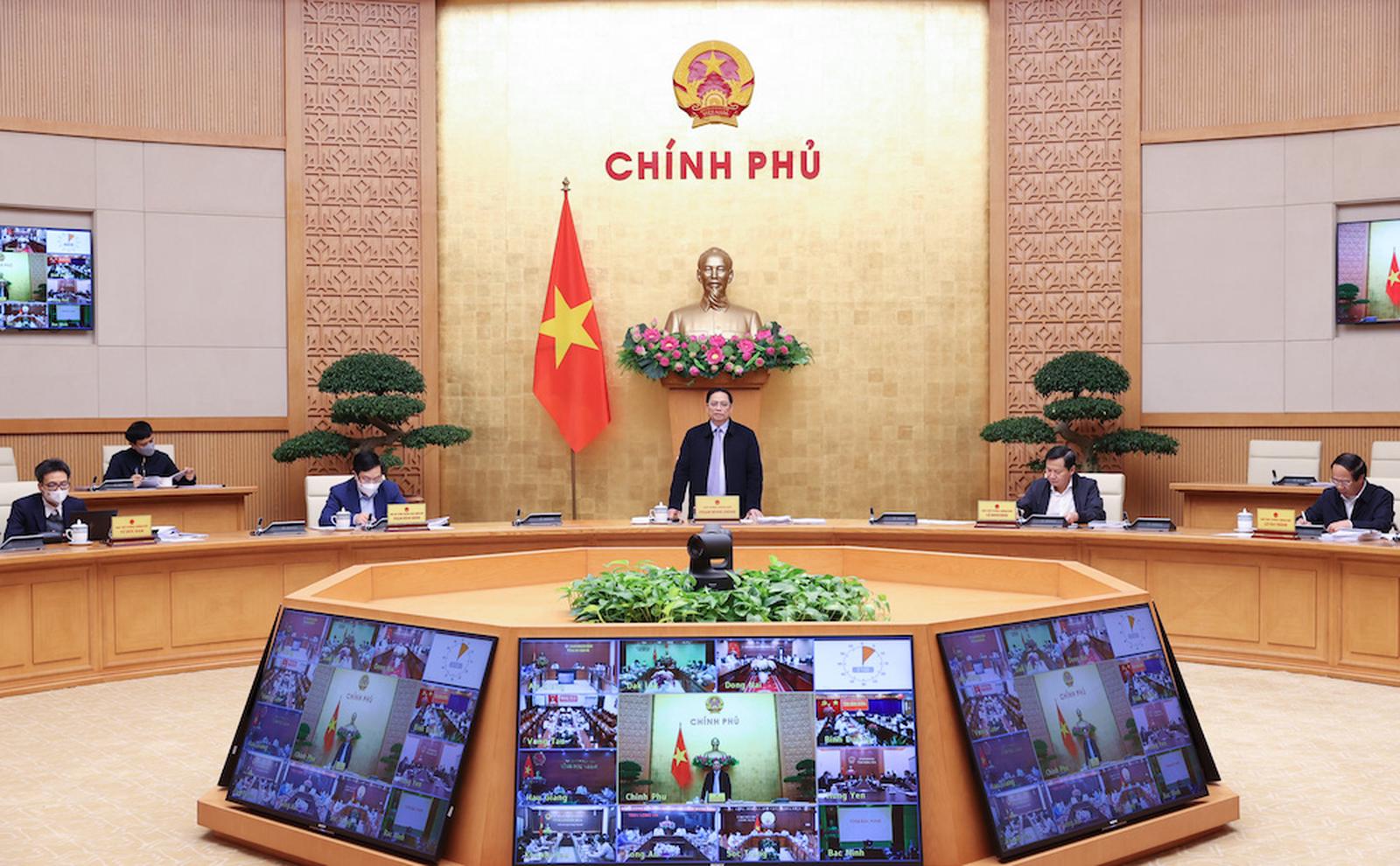 Thủ tướng Phạm Minh Chính chủ trì cuộc họp trực tuyến của Thường trực Chính phủ với các địa phương về báo cáo nghiên cứu tiền khả thi đối với 5 dự án giao thông trọng điểm quốc gia. Ảnh: Nhật Bắc