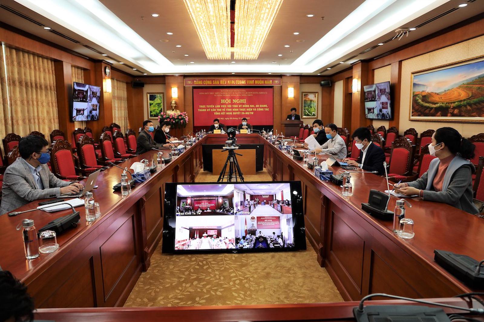 Chiều 8/12, Ban Kinh tế Trung ương tổ chức hội nghị trực tuyến với tỉnh, thành ủy ba địa phương Đồng Nai, An Giang, Cần Thơ tổng kết Nghị quyết số 26-NQ/TW của Trung ương khóa X về nông nghiệp, nông dân, nông thôn.