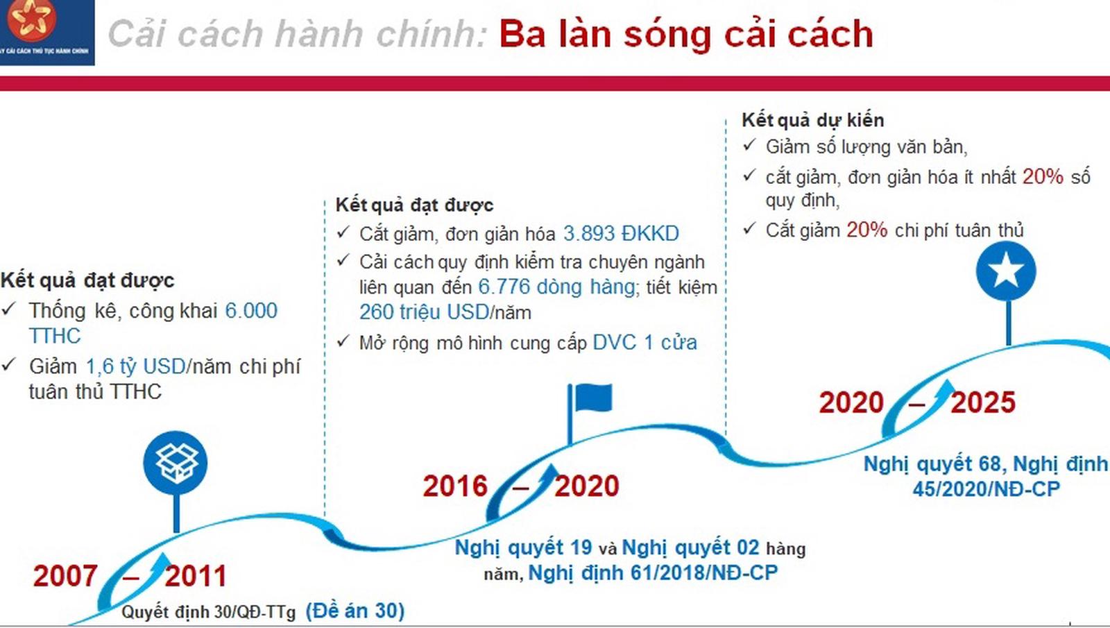 Theo báo cáo tại buổi họp báo, đến nay Việt Nam đã trải qua 2 “làn sóng" cải cách để phục vụ người dân, doanh nghiệp ngày một tốt hơn.