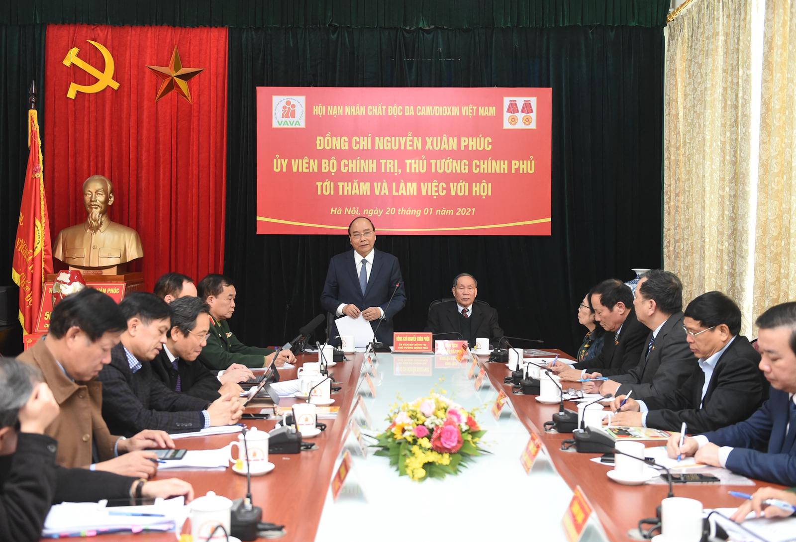 Phát biểu tại cuộc làm việc, Thủ tướng Nguyễn Xuân Phúc nhấn mạnh quan điểm phát triển bao trùm trong phát triển kinh tế - xã hội, người yếu thế, người có hoàn cảnh khó khăn, người có công với cách mạng và nạn nhân chất độc da cam/dioxin đều được quan tâm. Mặc dù chiến tranh đã lùi xa nhưng vẫn còn nhiều người mang trong mình chất độc da cam/dioxin, nhiều trẻ em bị dị tật, sống thực vật và nhiều chị em bị mất thiên chức làm vợ, làm mẹ.