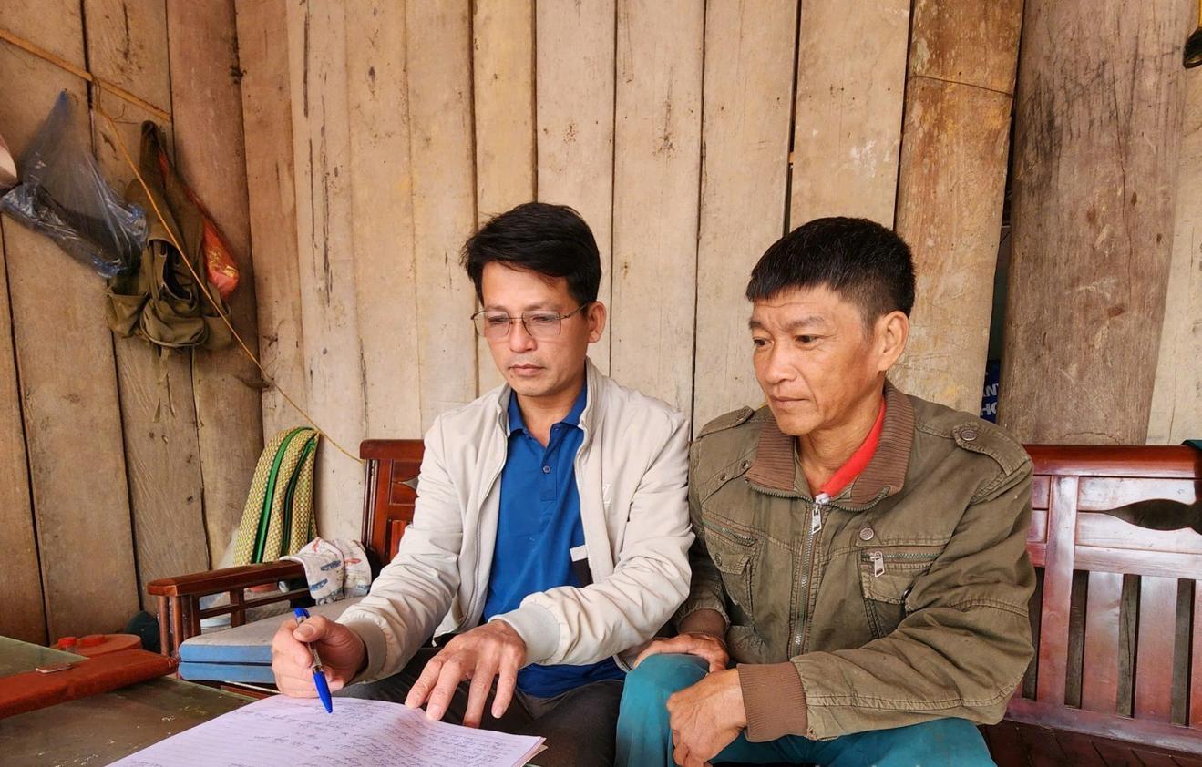 Bí thư Chi bộ, trưởng thôn Làng Lầm (bên trái) tuyên truyền người dân về chủ trương làm đường giao thông nông thôn. Ảnh: Nam Khánh