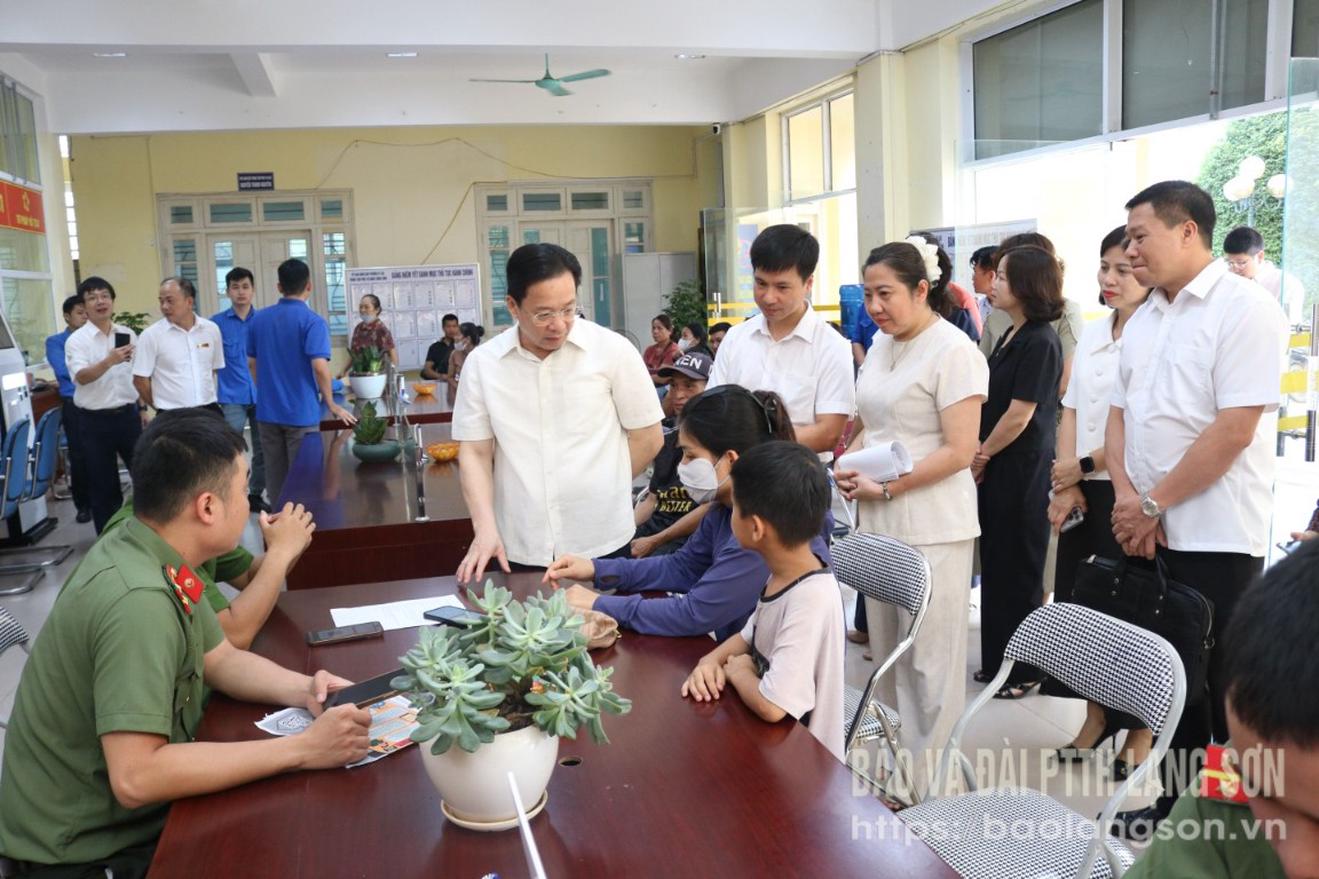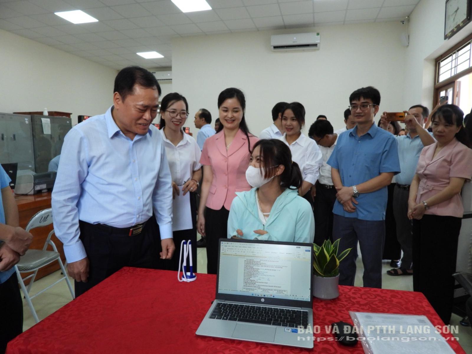 Chủ tịch UBND tỉnh Hồ Tiến Thiệu kiểm tra hoạt động tại Trung tâm Phục vụ hành chính công xã Cai Kinh. Ảnh: BLS
