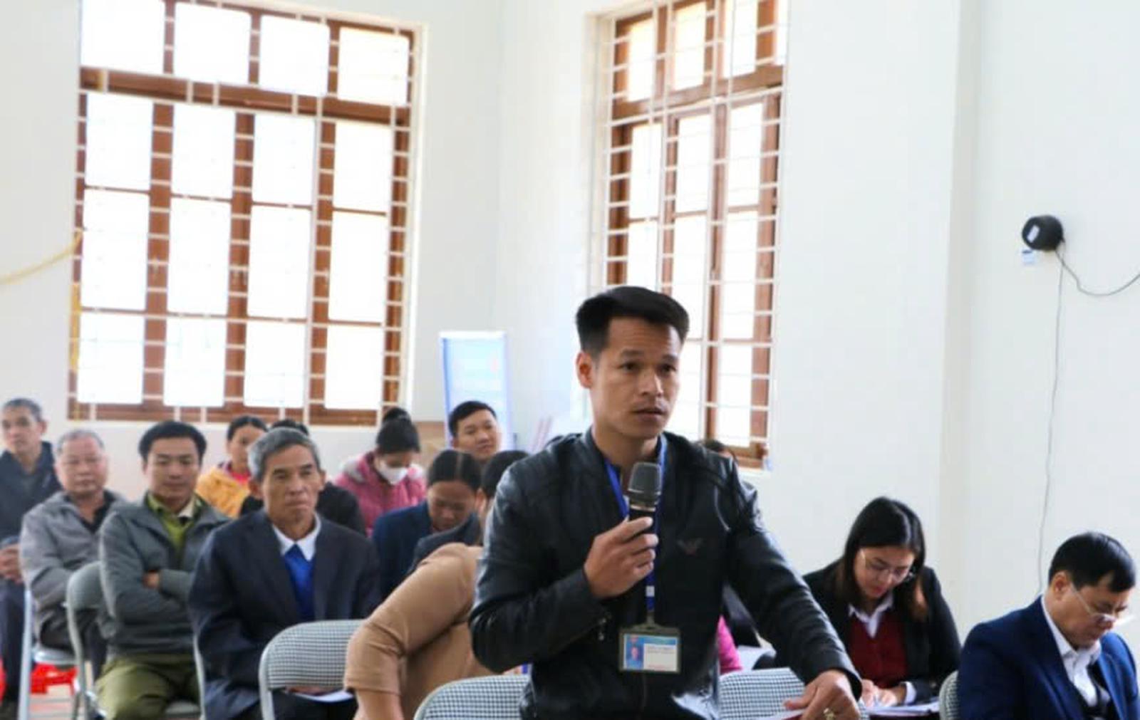 Cử tri xã Lương Năng phát biểu ý kiến tại hội nghị. Ảnh: Thanh Mai