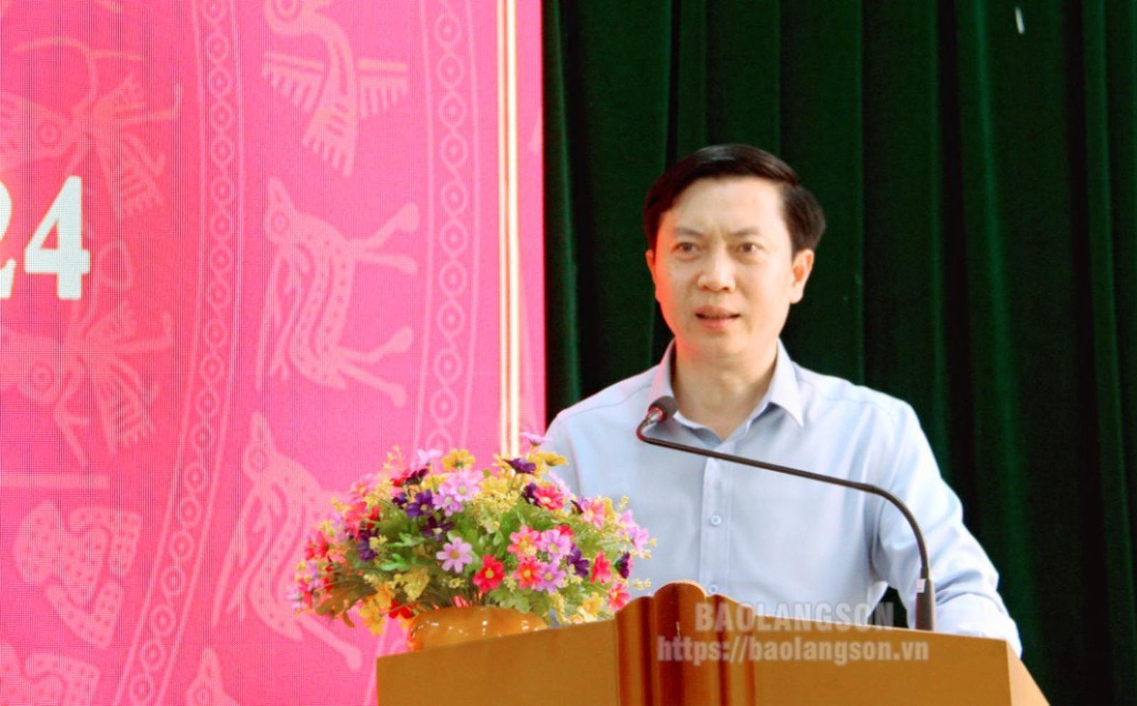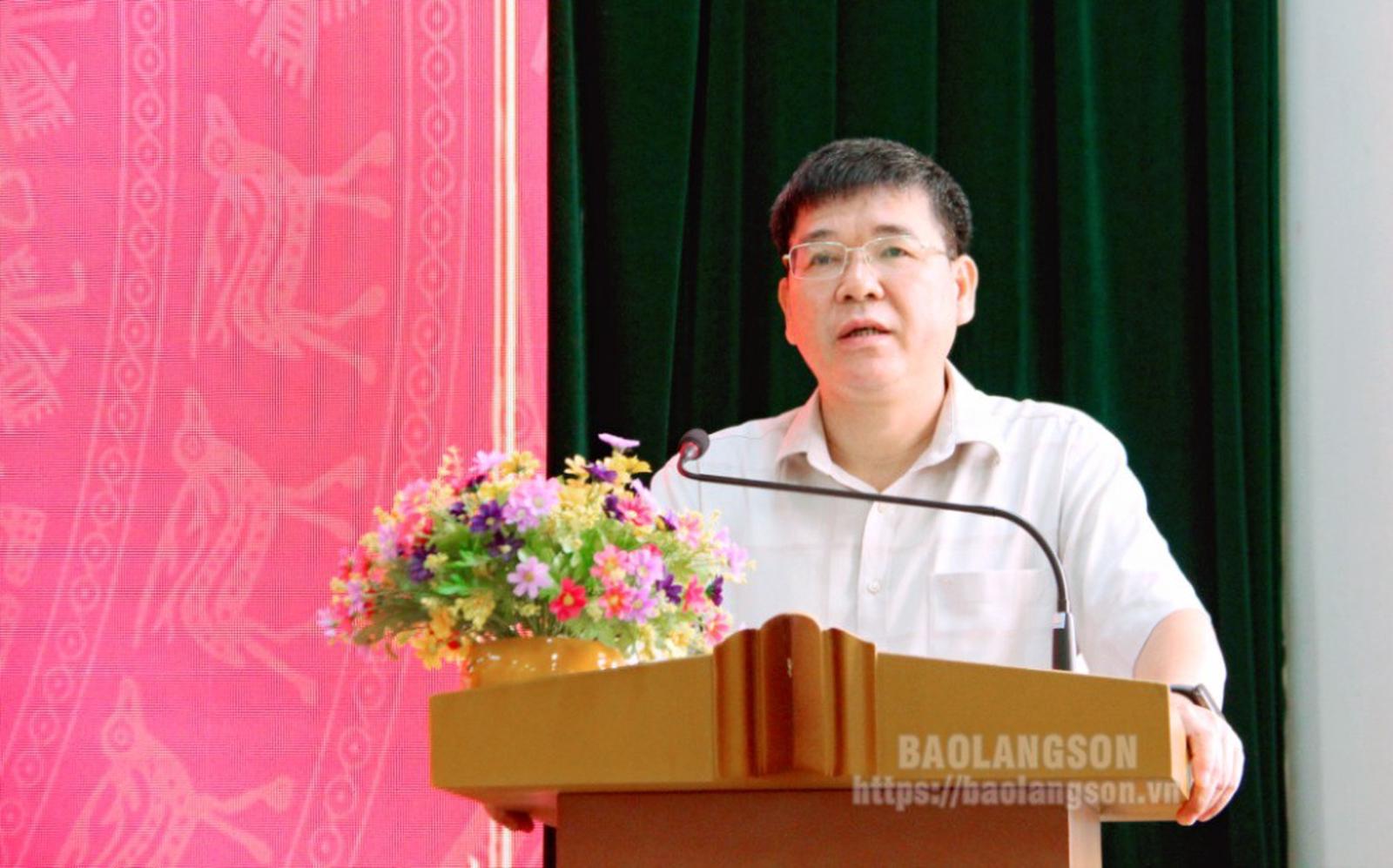 Đồng chí Nguyễn Trọng Sơn, Phó trưởng Ban Tuyên giáo Tỉnh ủy thông tin tình hình thời sự. Ảnh: Baolangson.vn