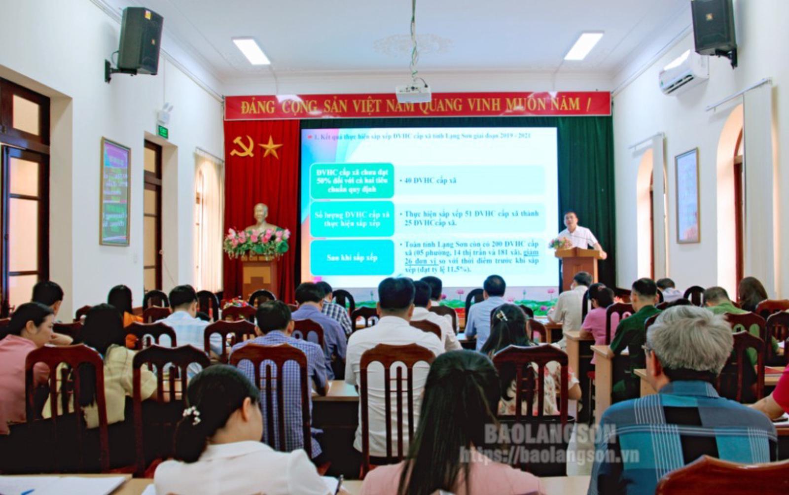 Lãnh đạo Sở Nội vụ thông tin tình hình triển khai, thực hiện sắp xếp đơn vị hành chính cấp huyện, cấp xã trên địa bàn tỉnh . Ảnh: Baolangson.vn