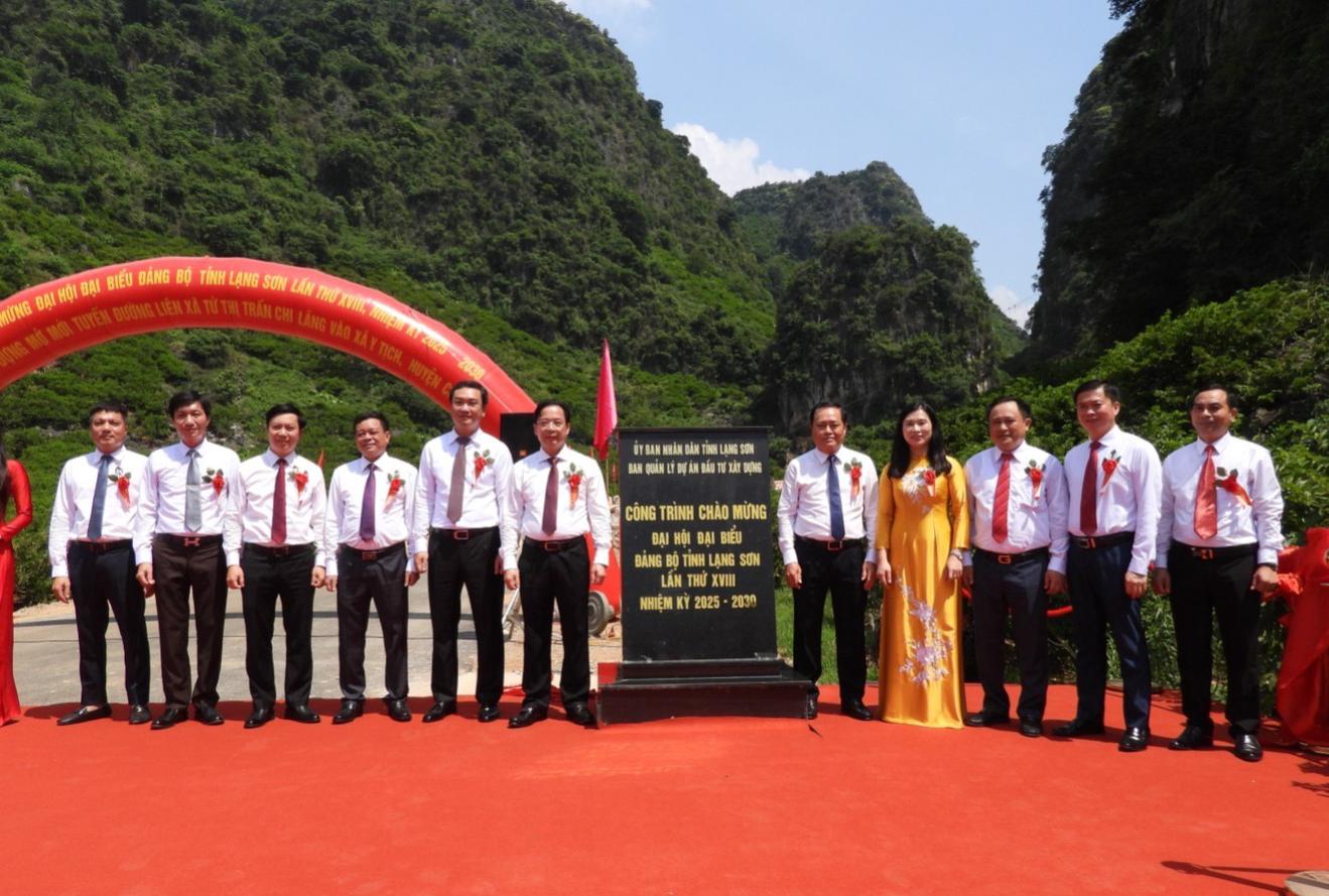 Lãnh đạo tỉnh Lạng Sơn chụp ảnh lưu niệm tại công trình. Ảnh: BLS