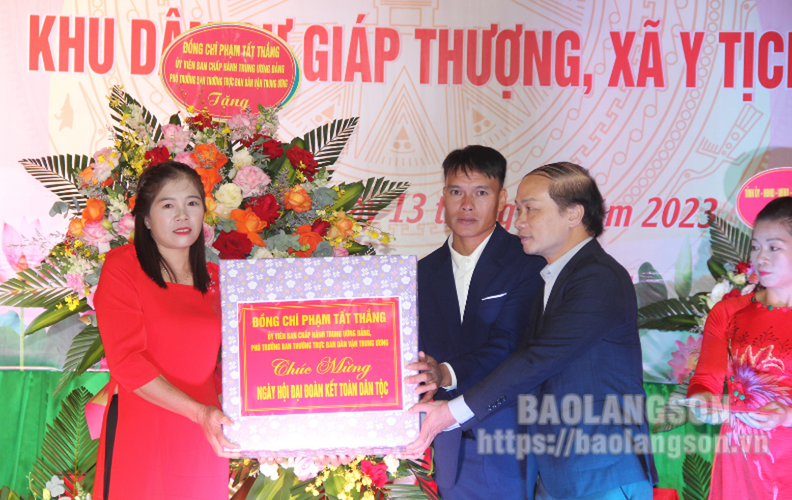 (Thanh tra) - Sáng 13/11, Đoàn công tác do đồng chí Phạm Tất Thắng, Uỷ viên Trung ương Đảng, Phó Trưởng Ban Thường trực Ban Dân vận Trung ương làm trưởng đoàn đến dự Ngày hội Đại đoàn kết toàn dân tộc tại khu dân cư thôn Giáp Thượng, xã Y Tịch, huyện Chi Lăng.