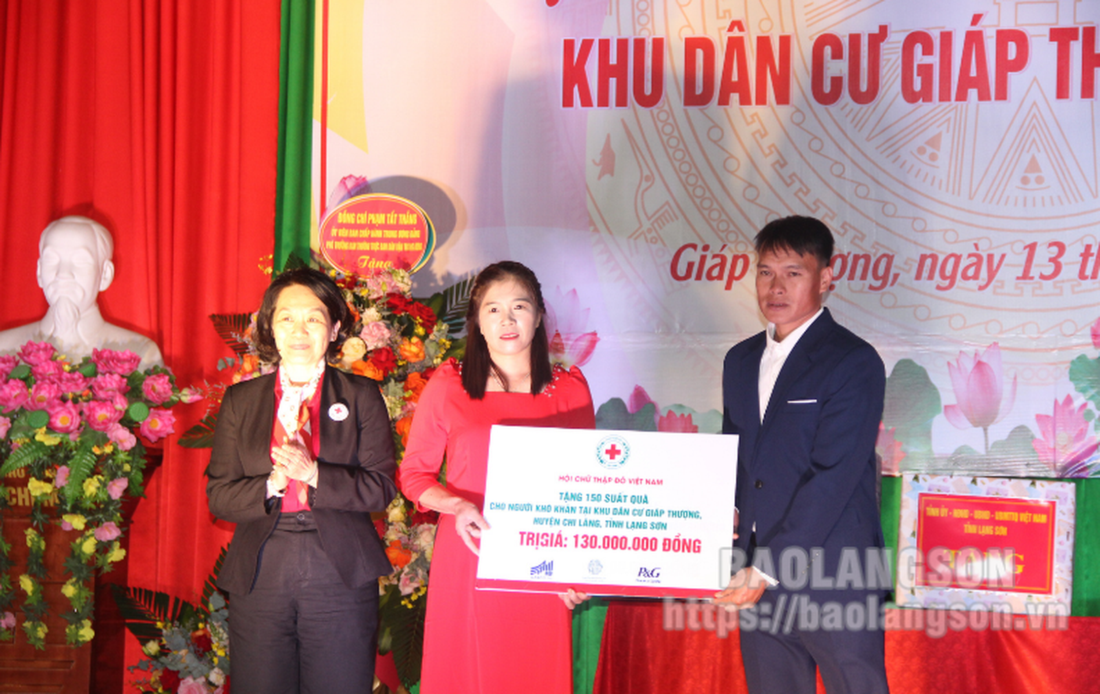 Trong chương trình ngày hội, lãnh đạo Hội Chữ Thập đỏ Việt Nam cũng trao tặng 150 suất quà cho người có hoàn cảnh khó khăn tại khu dân cư thôn Giáp Thượng với tổng trị giá 130 triệu đồng.