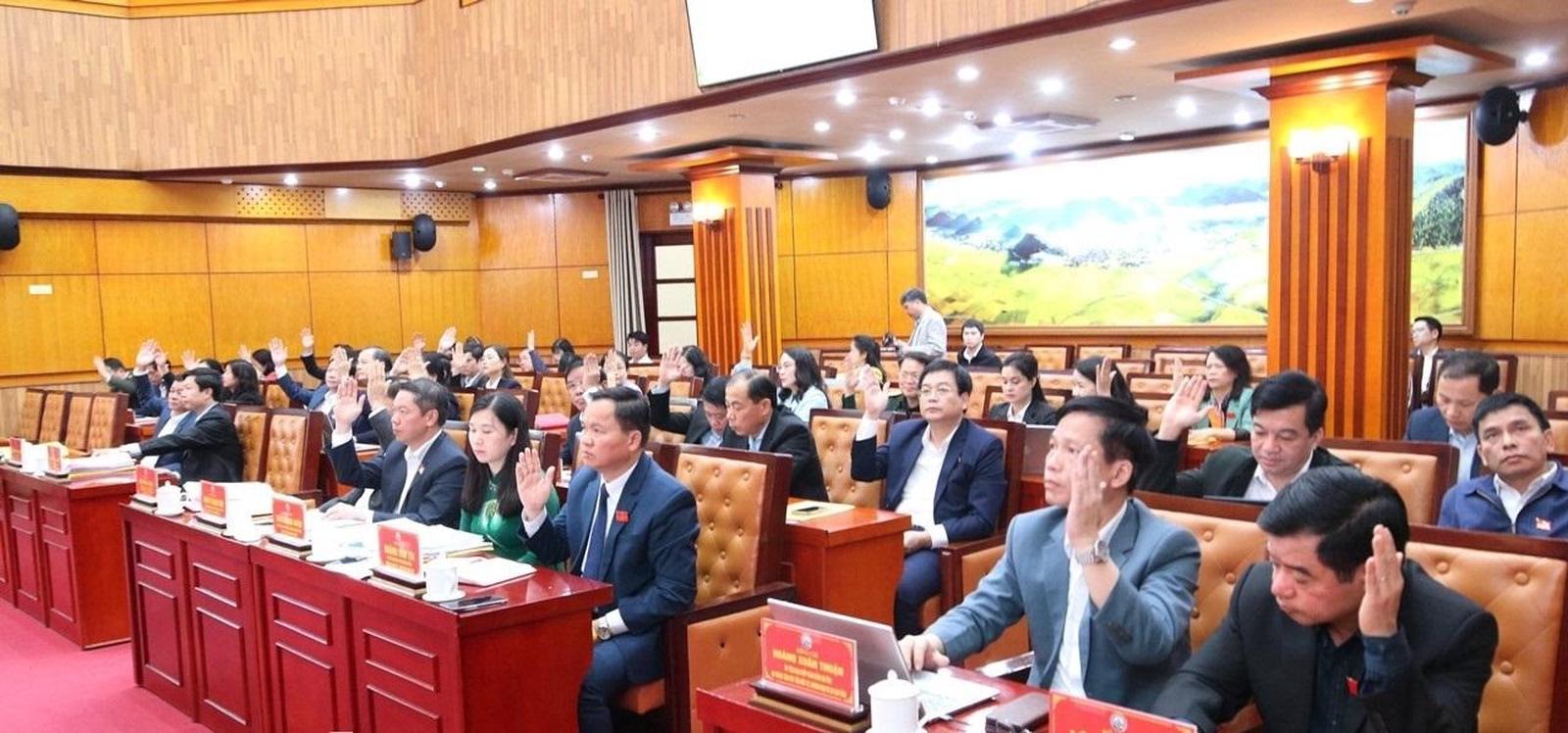 Sau khi nghe các tờ trình, thuyết trình, báo cáo thẩm tra, các đại biểu HĐND tỉnh đã thảo luận, nhất trí và biểu quyết thông qua 11 nghị quyết, trong đó có 1 nghị quyết về công tác nhân sự; 3 nghị quyết về cơ chế chính sách; 3 nghị quyết về đầu tư công, ngân sách, chuyển mục đích sử dụng rừng; 4 nghị quyết về quy định thẩm quyền, ủy quyền và bãi bỏ, sửa đổi nghị quyết.