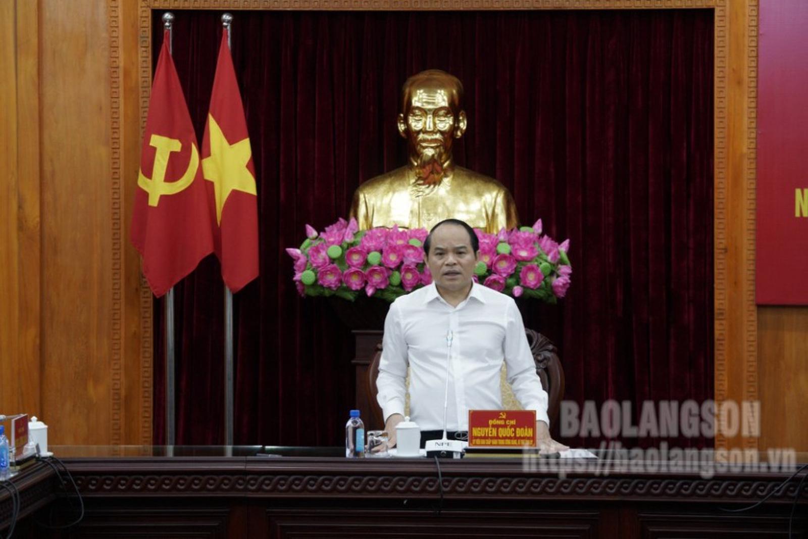 Đồng chí Nguyễn Quốc Đoàn, Ủy viên Trung ương Đảng, Bí thư Tỉnh ủy phát biểu tại hội nghị. Ảnh: Baolangson.vn