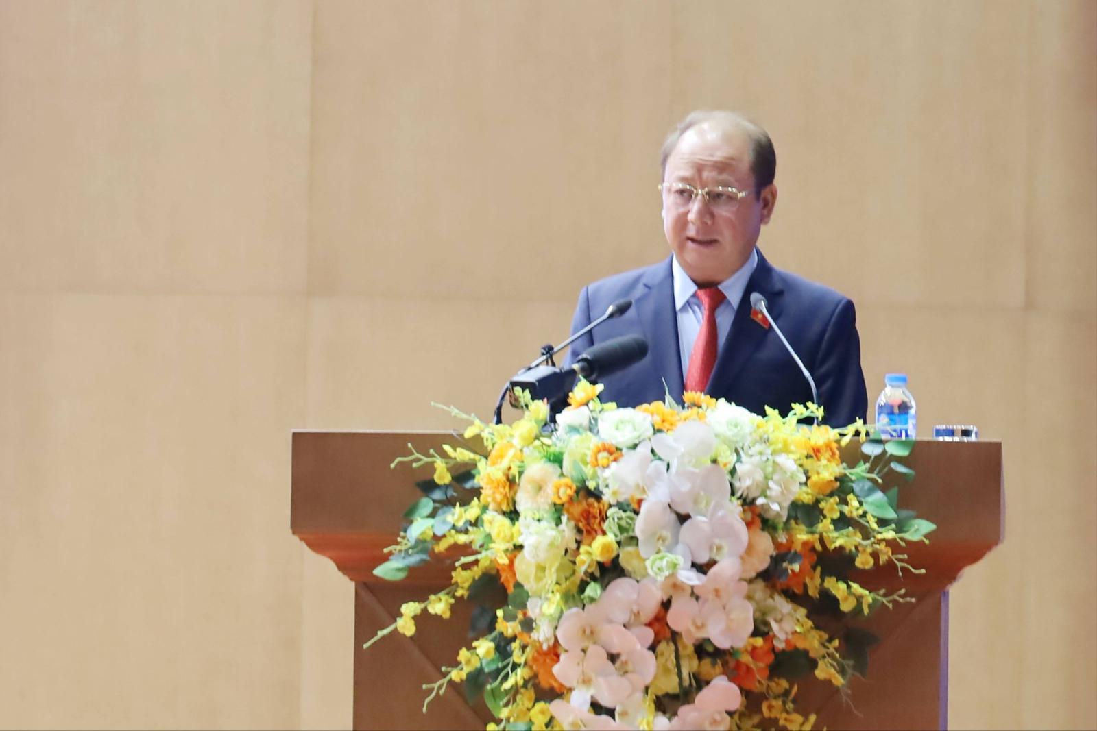 Bí thư Tỉnh ủy Lào Cai Trịnh Việt Hùng phát biểu tại Hội nghị. Ảnh: Nguyễn Hiên