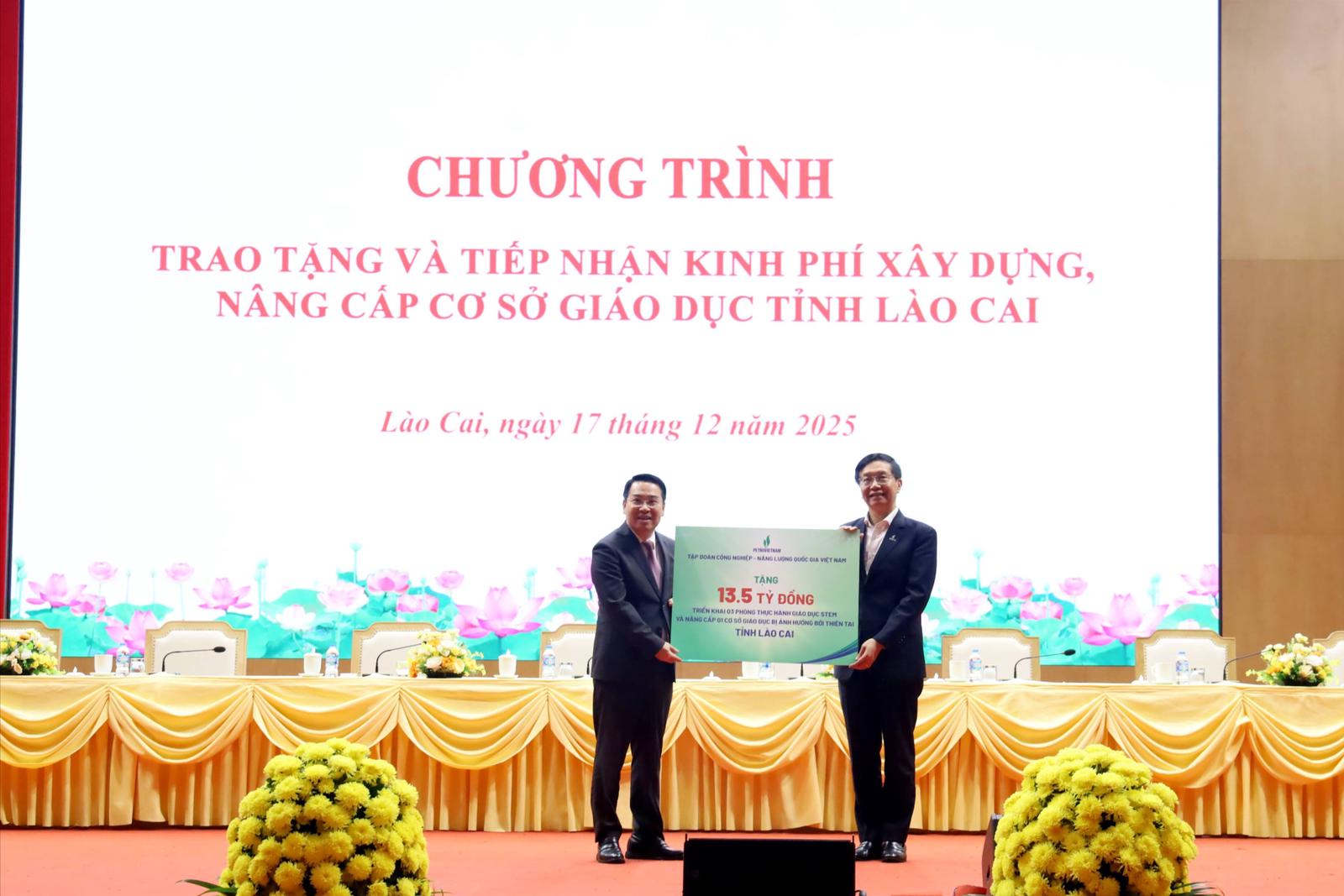 Nhân dịp này, Tập đoàn Công nghiệp – Năng lượng Quốc gia Việt Nam đã hỗ trợ tỉnh Lào Cai 13,5 tỷ đồng để triển khai các phòng thực hành giáo dục STEM và nâng cấp cơ sở giáo dục bị ảnh hưởng bởi thiên tai; Tập đoàn Xăng dầu Việt Nam trao tặng 5 tỷ đồng để xây dựng trường học trên địa bàn tỉnh.