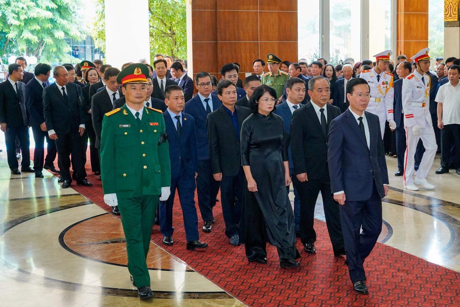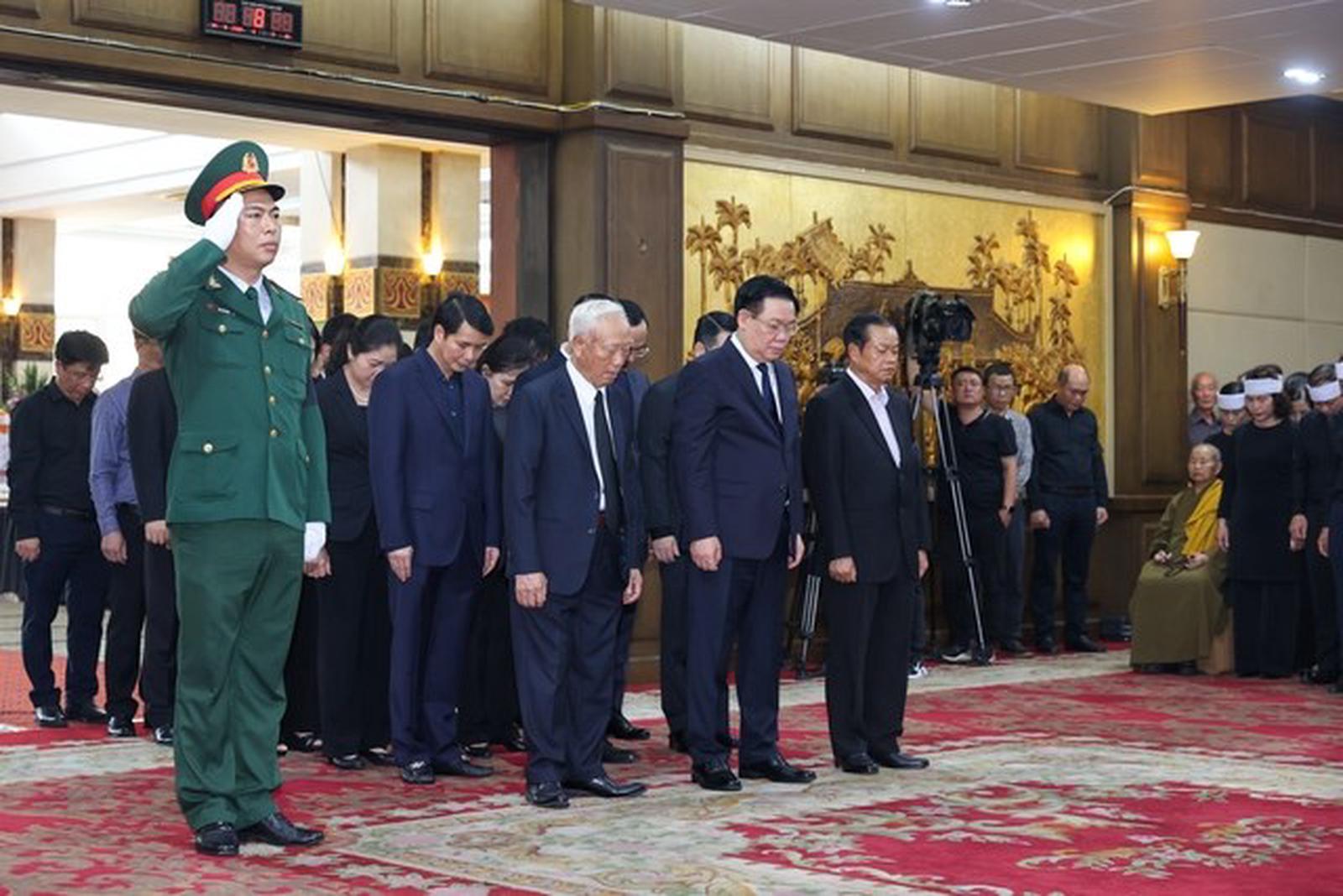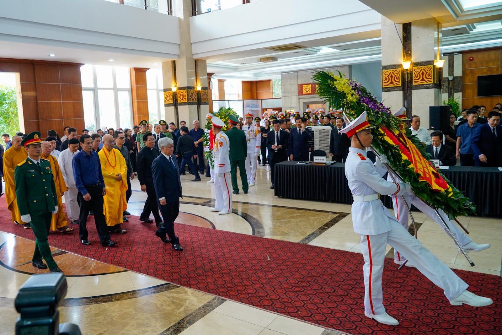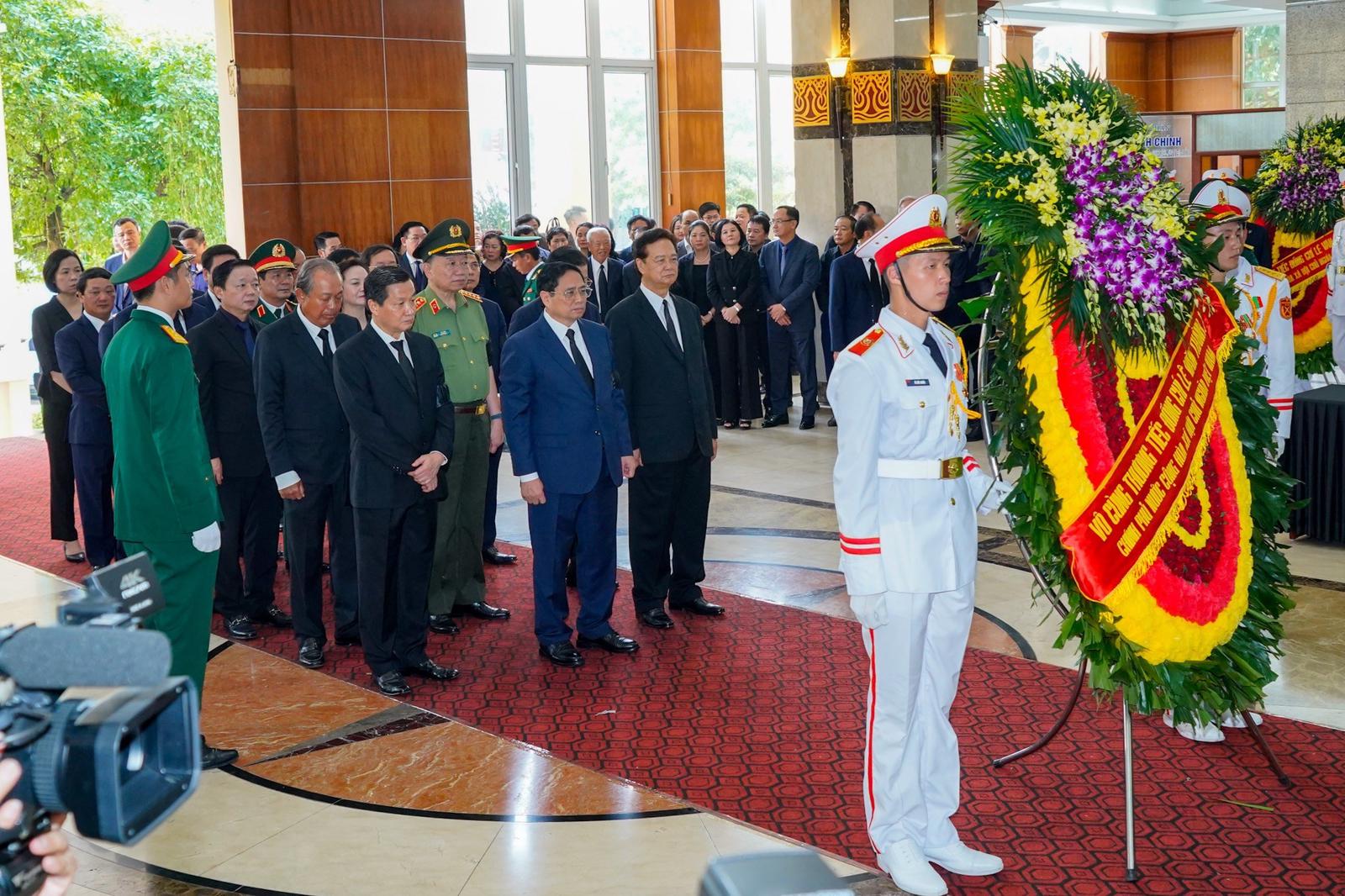 Nguyên Ủy viên Bộ Chính trị, nguyên Thủ tướng Chính phủ Nguyễn Tấn Dũng; nguyên Ủy viên Bộ Chính trị, nguyên Phó Thủ tướng Thường trực Chính phủ Trương Hòa Bình; đồng chí Lê Minh Khái, Bí thư Trung ương Đảng, Phó Thủ tướng Chính phủ; đồng chí Trần Hồng Hà, Phó Thủ tướng Chính phủ; đồng chí Đại tướng Tô Lâm, Bộ trưởng Bộ Công an; đồng chí Trần Văn Sơn, Bộ trưởng, Chủ nhiệm Văn phòng Chính phủ tham gia đoàn viếng.