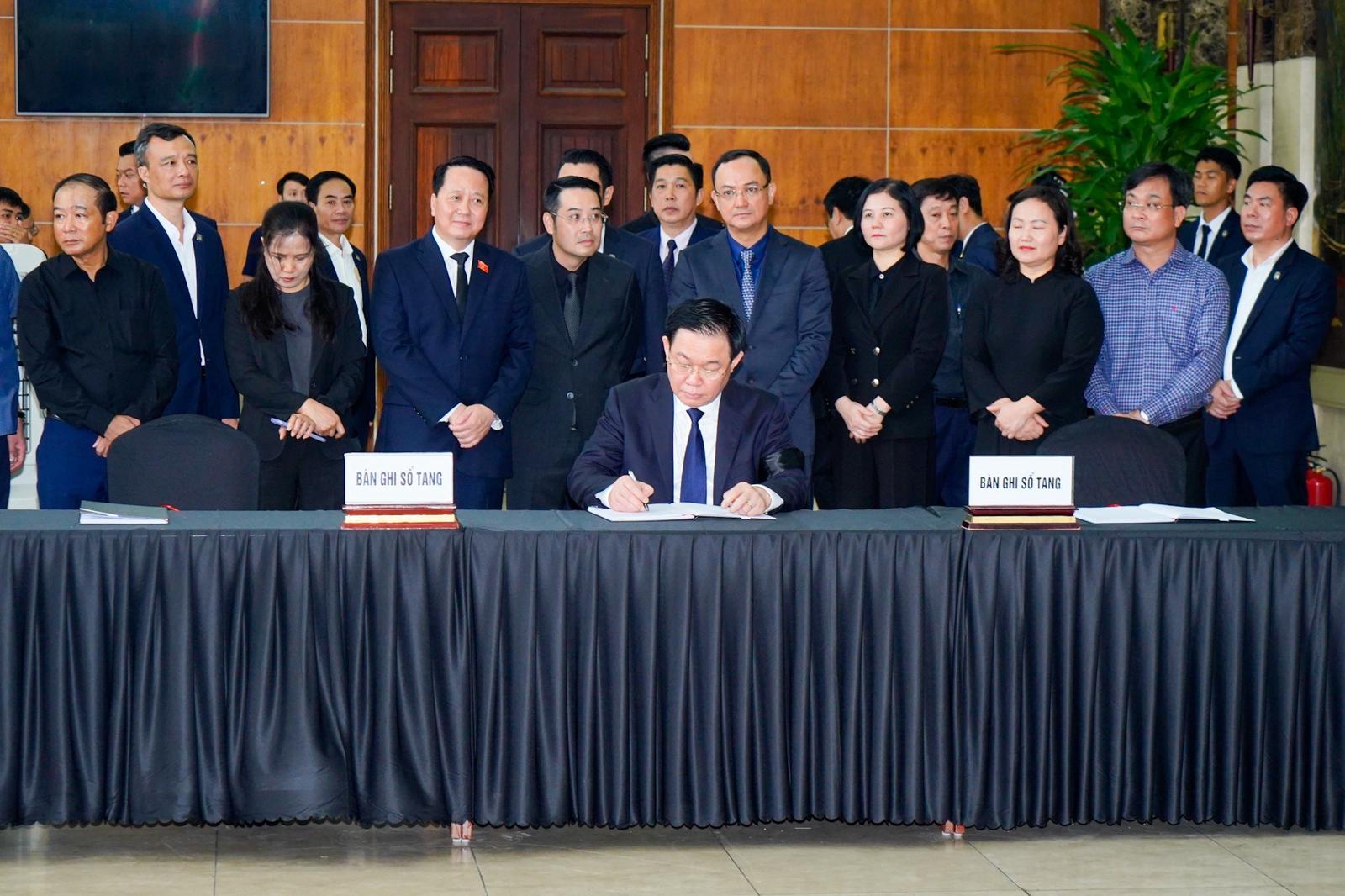 Đồng chí Trương Thị Mai, Ủy viên Bộ Chính trị, Bí thư Trung ương Đảng, Thường trực Ban Bí thư, Trưởng Ban Tổ chức Trung ương ghi sổ tang