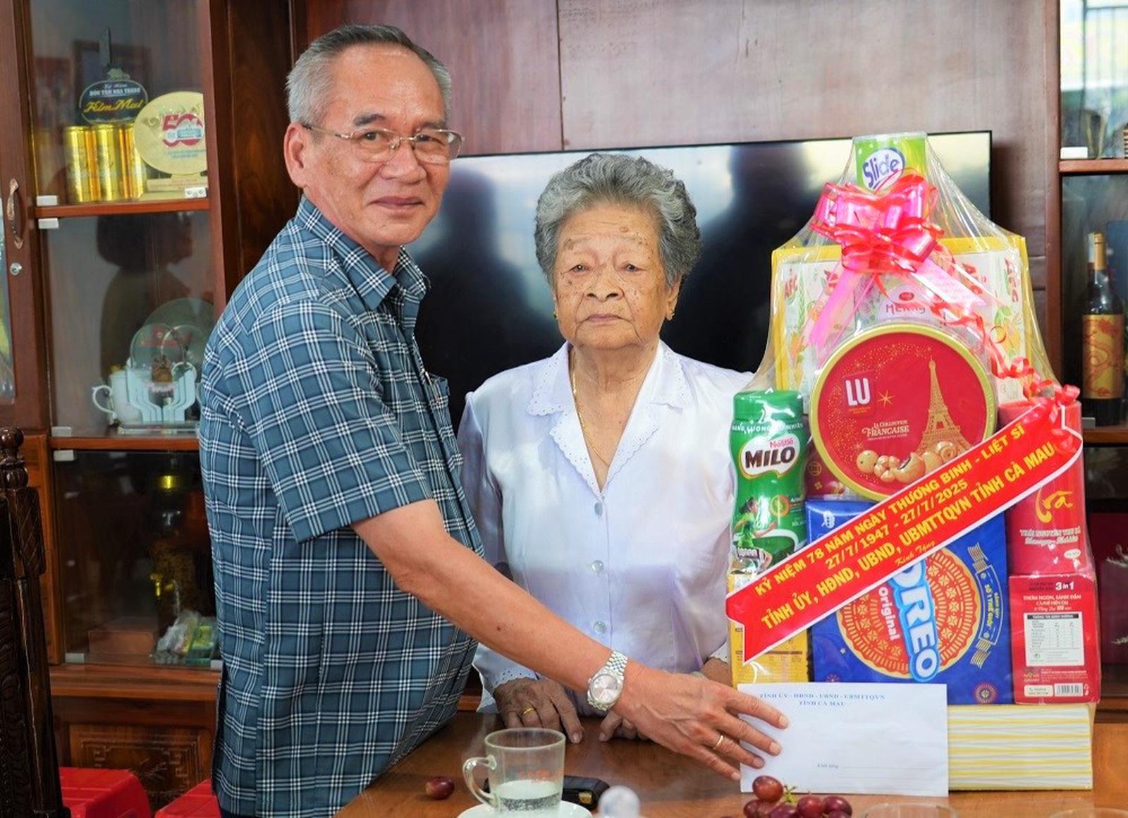 (Thanh tra) - Nhân kỷ niệm 78 năm ngày Thương binh – Liệt sĩ (27/7/1947 – 27/7/2025), từ ngày từ 22/7 đến 24/7, nhiều đồng chí lãnh đạo của tỉnh Cà Mau đã đến thăm hỏi, tặng quà các Mẹ Việt Nam Anh hùng và gia đình chính sách trên địa bàn tỉnh.
