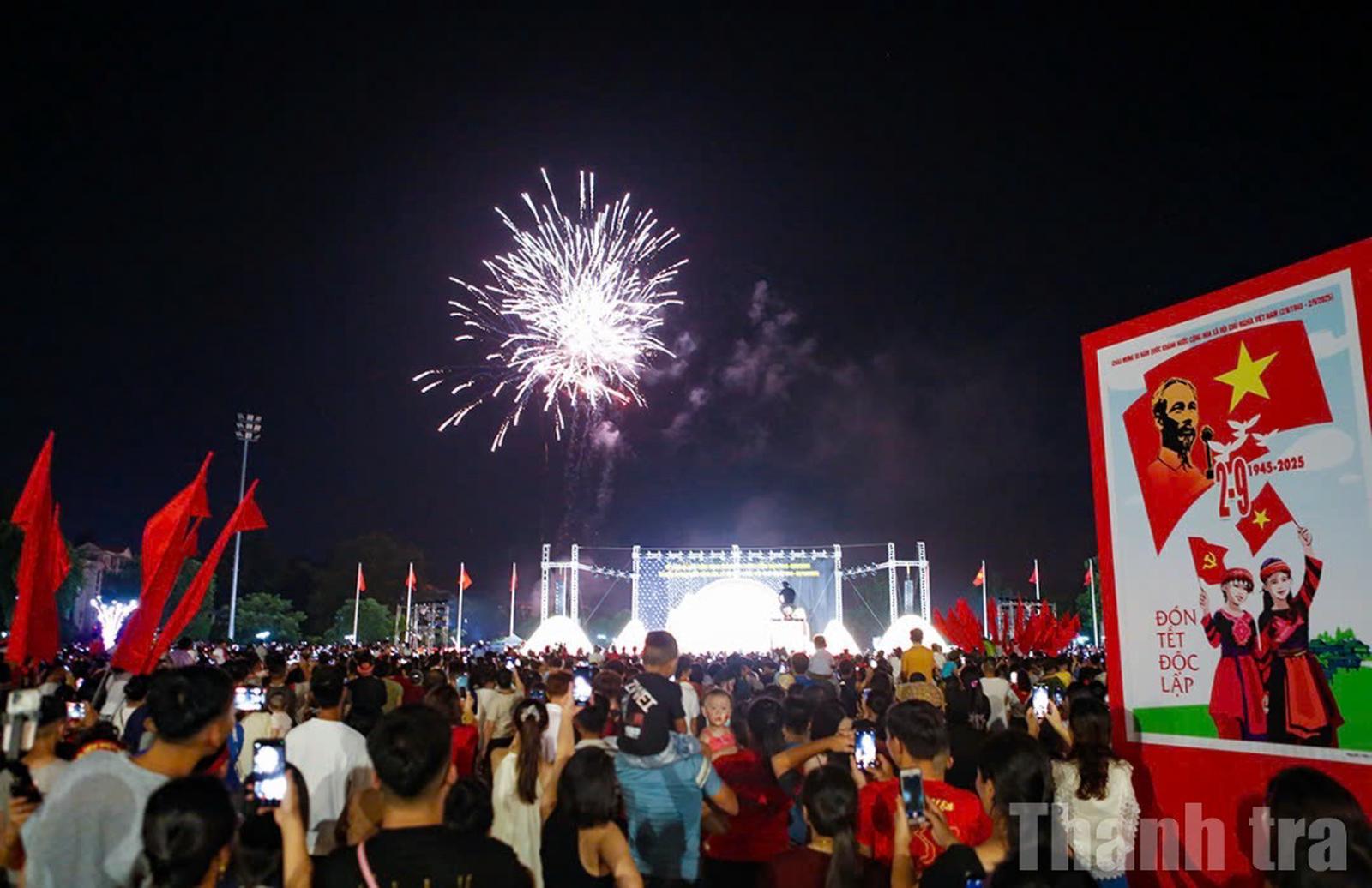 Màn bắn pháo hoa chào mừng ngày Quốc khánh tại Quảng trường 19/8. Ảnh: Bùi Bình