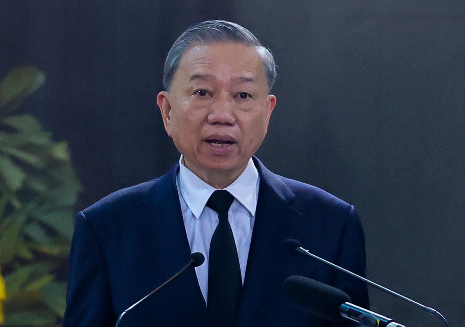 Sau đó, Chủ tịch nước Tô Lâm, Trưởng ban Lễ tang đọc lời điếu.