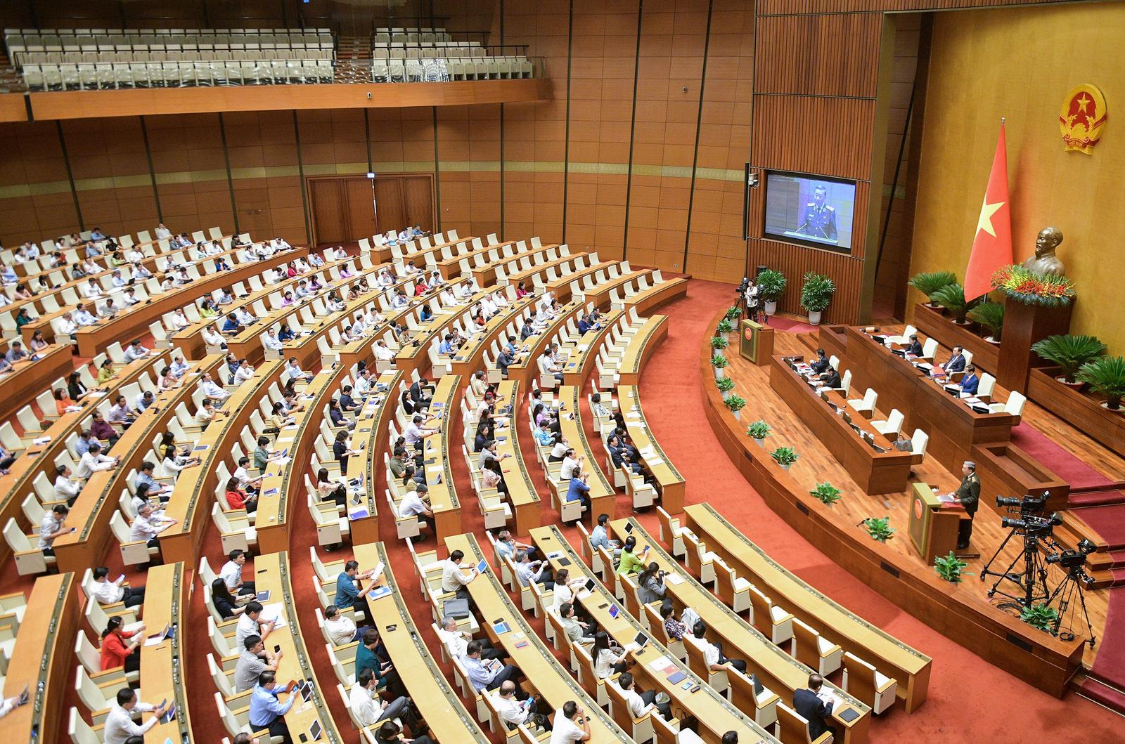Quốc hội thảo luận ở hội trường Dự thảo Luật Lực lượng tham gia bảo vệ an ninh, trật tự ở cơ sở. Ảnh: P.Thắng