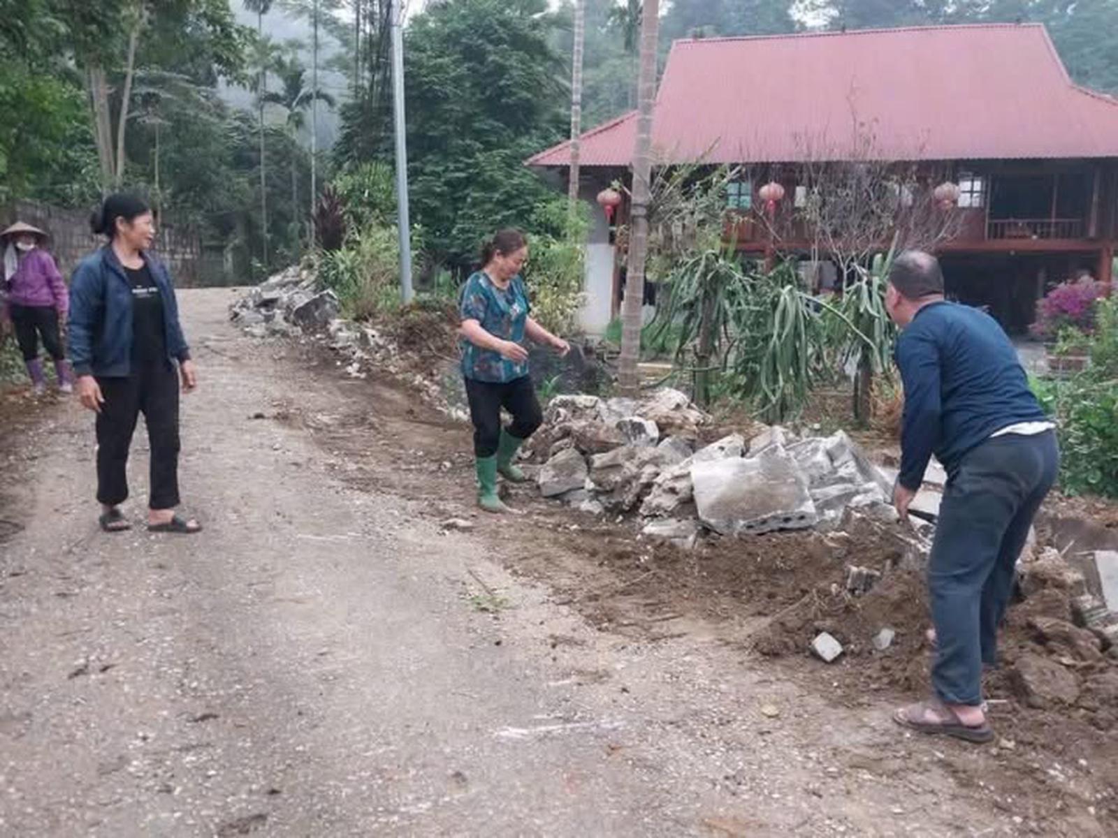 Người dân thị trấn Yên Thế, huyện Lục Yên tự nguyện hiến đất mở đường. Ảnh: Duy Khánh