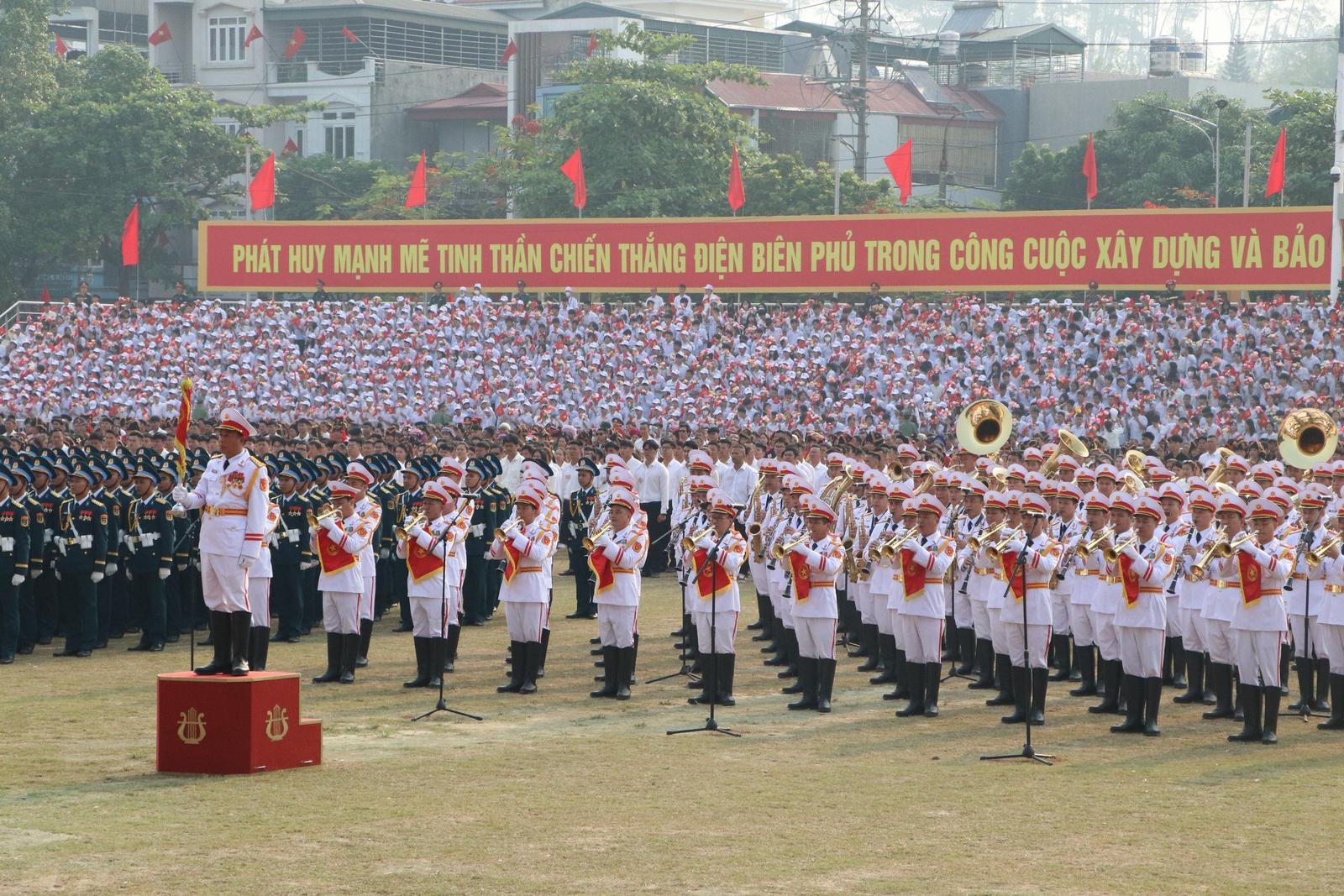 Lực lượng của tỉnh Điện Biên có 3 khối nghi trượng, khối nữ dân quân các dân tộc Tây Bắc và các khối diễu hành quần chúng, cùng 20 khối đứng làm nền trên sân.