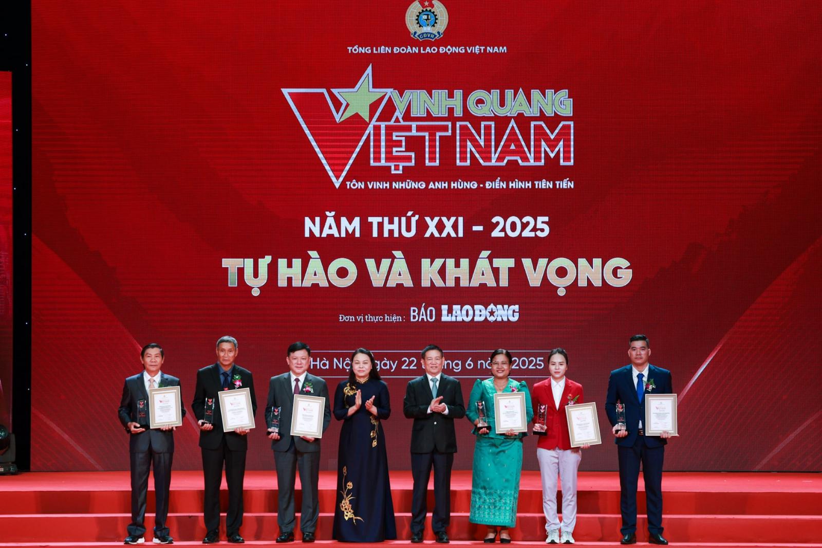 Phạm Đình Duẩn (người đứng ngoài cùng bìa phải) là 1 trong 19 tập thể, cá nhân được vinh danh tại Chương trình Vinh quang Việt Nam 2025. Ảnh: TQ