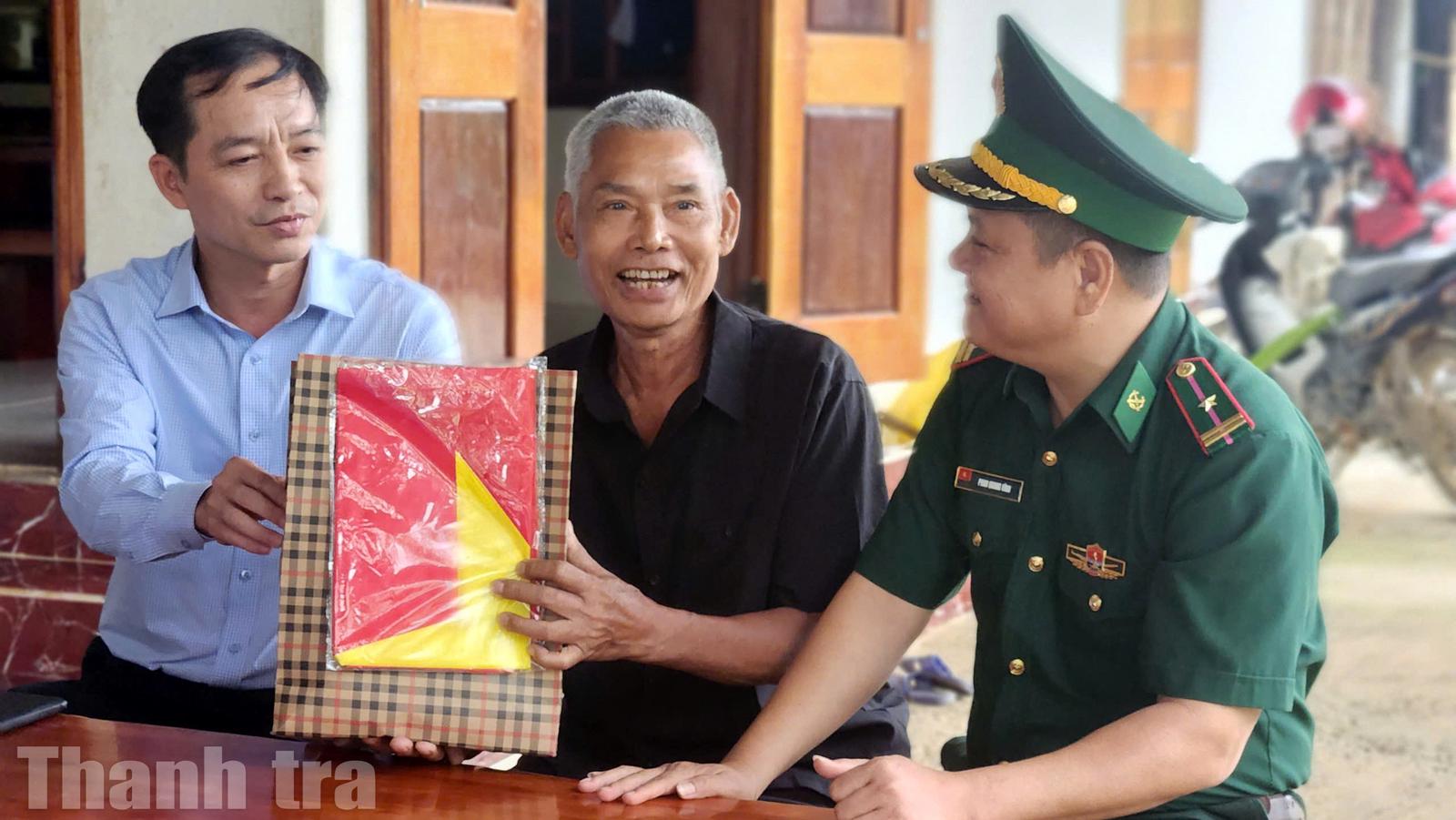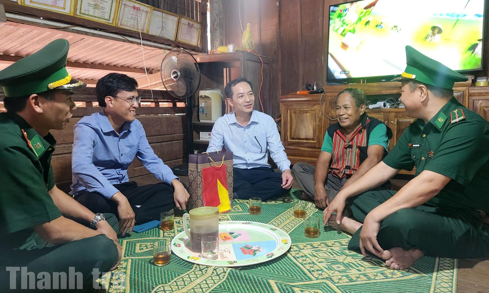 Bí thư Đảng ủy xã Hướng Lập và cán bộ Đồn Biên phòng Hướng Lập tặng quà, thăm hỏi cựu chiến binh Hồ Sỹ Nói. Ảnh: Minh Tân