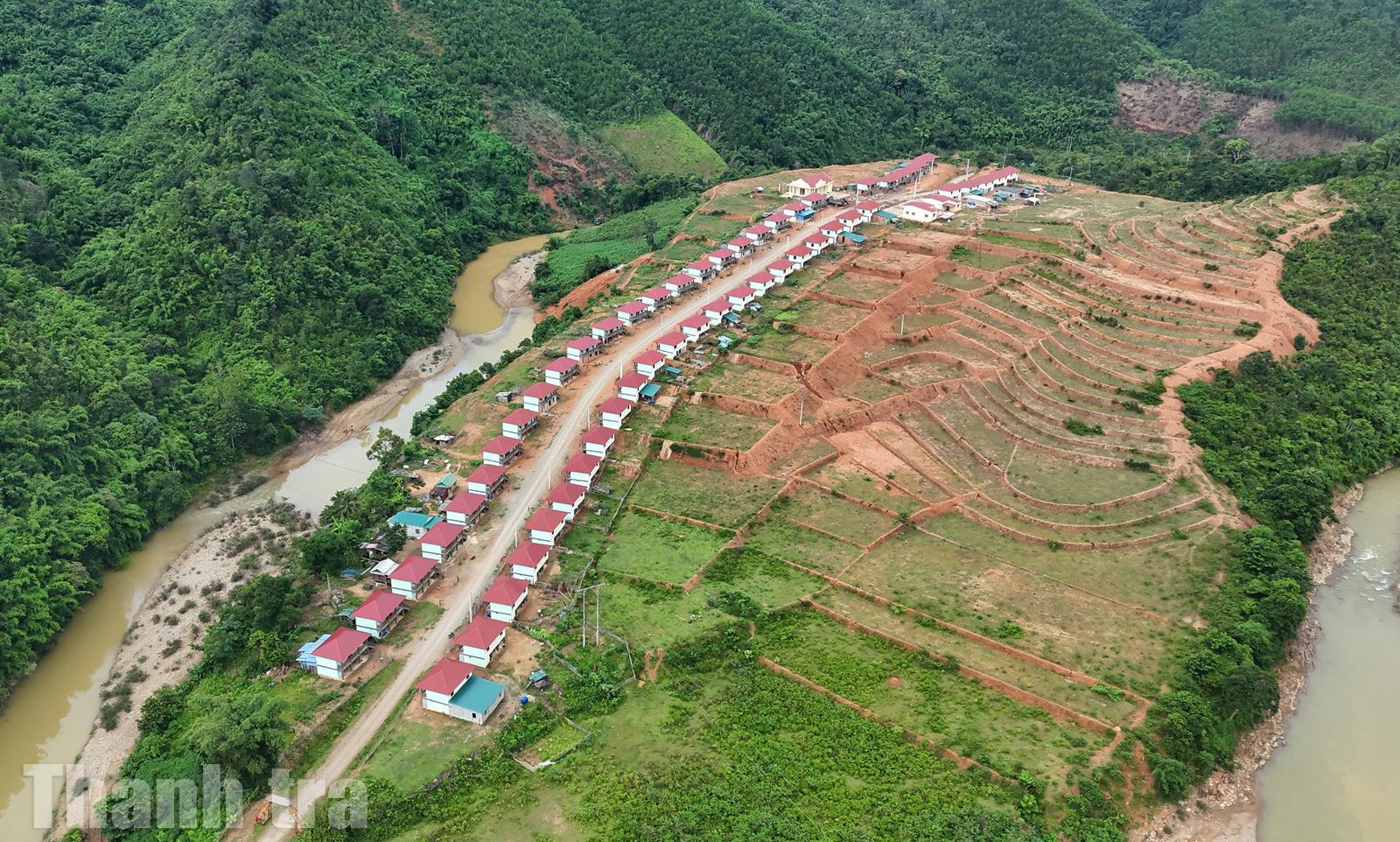 Thôn nghĩa tình Sơn Hải với 56 ngôi nhà khang trang, thiết kế theo kiến trúc nhà sàn cùng trường tiểu học, mẫu giáo, nhà sinh hoạt cộng đồng góp phần nâng cao đời sống bà con người Vân Kiều nơi vùng cao Quảng Trị. Ảnh: Minh Tân