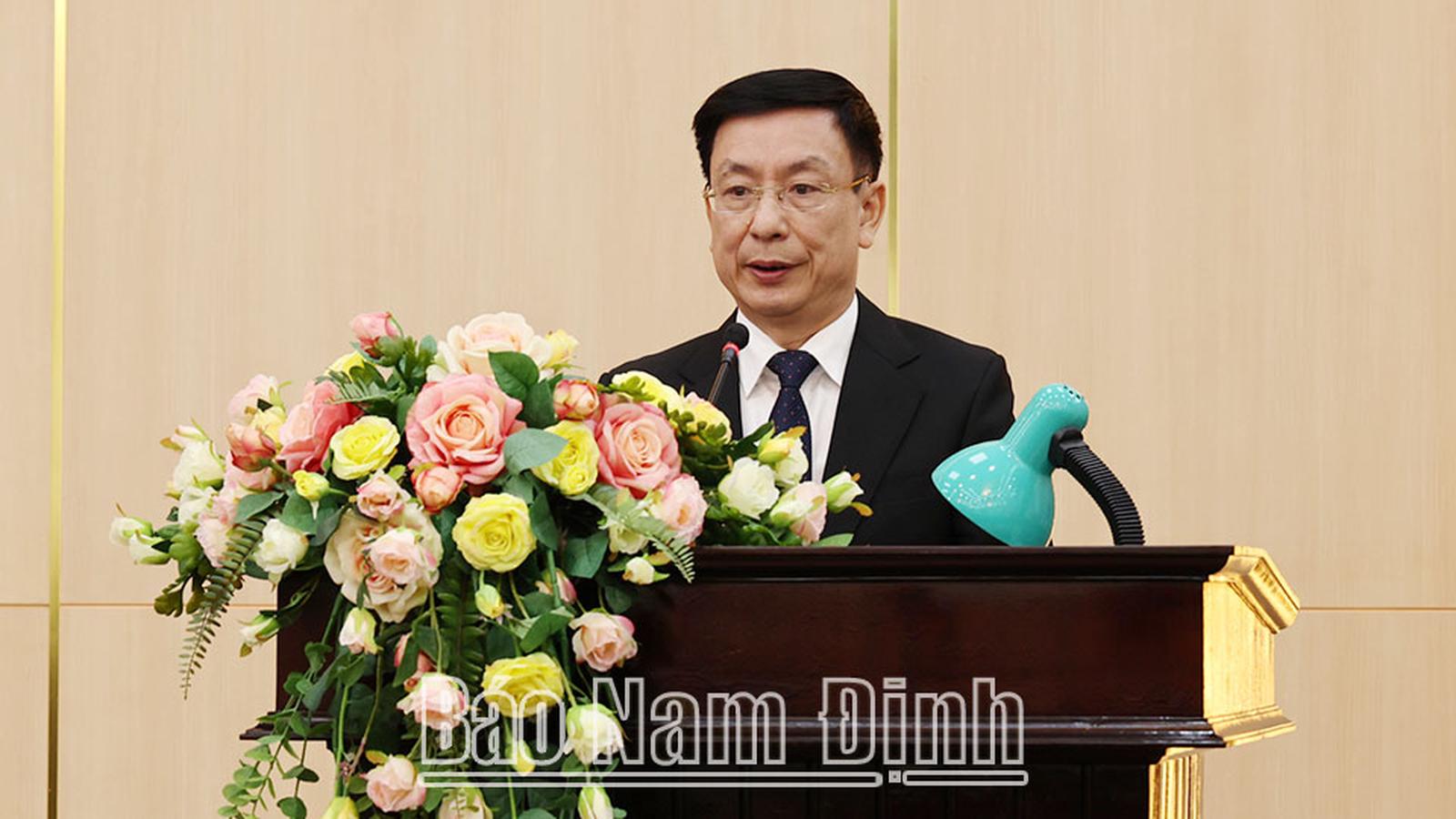 Ông Phạm Đình Nghị - Chủ tịch UBND tỉnh Nam Định phát biểu chỉ đạo, giao nhiệm vụ cho các tập thể, cá nhân. Ảnh BNĐ
