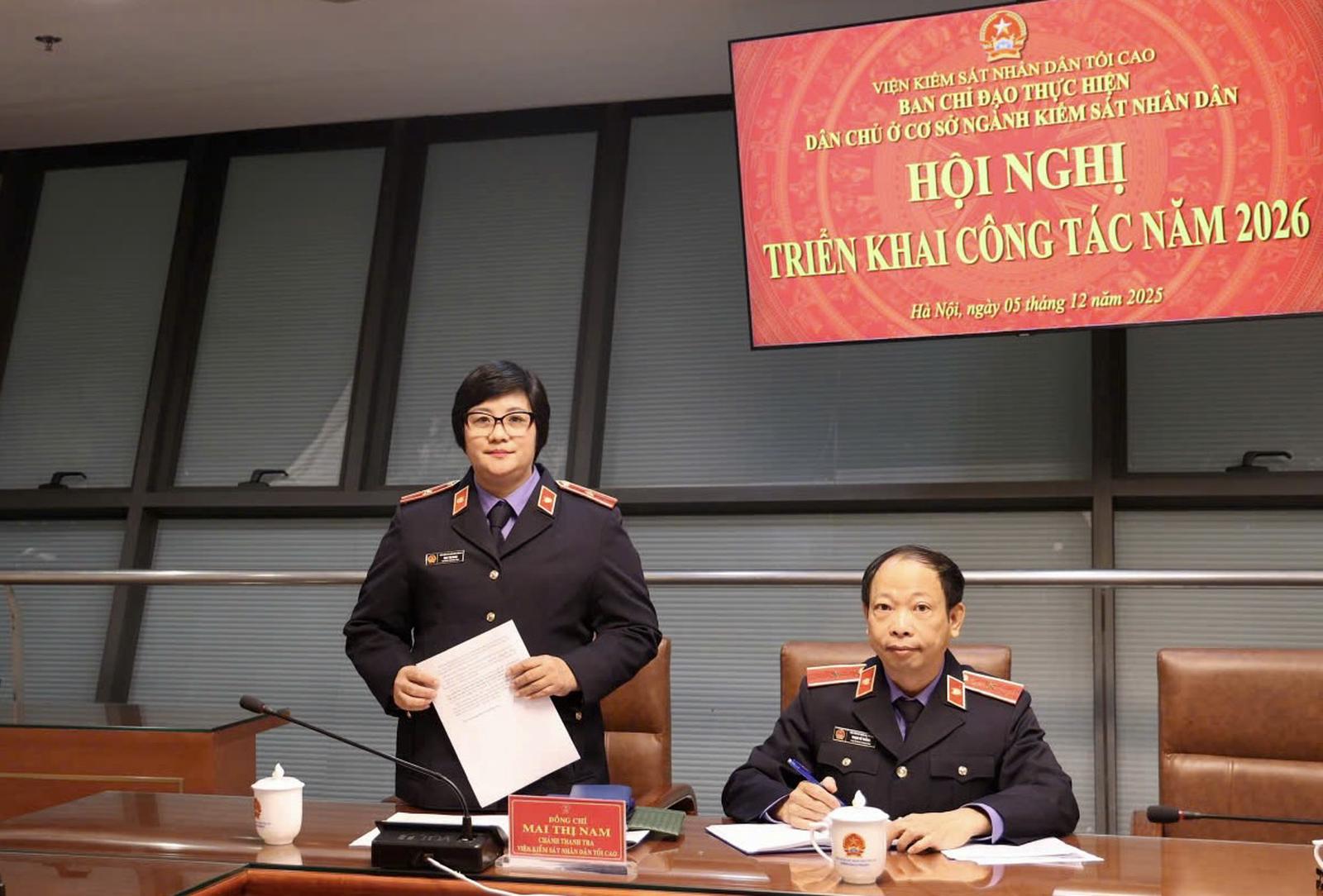 Chánh Thanh tra VKSND tối cao, Phó Trưởng Ban Thường trực Ban Chỉ đạo Mai Thị Nam đã đề ra phương hướng, nhiệm vụ trọng tâm năm 2026, như: Hoàn thiện cơ chế, quy chế thực hiện dân chủ tại cơ sở, địa phương; đẩy mạnh công khai, minh bạch; nâng cao chất lượng kiểm tra, giám sát.