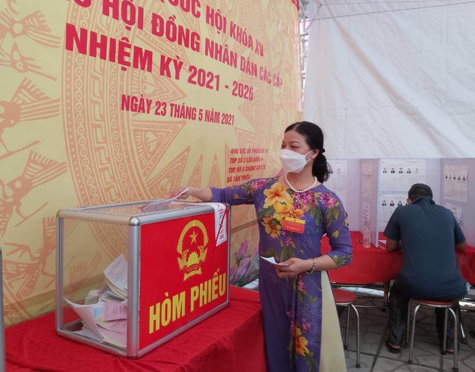 Là người tham gia phục vụ cho công tác bầu cử tại tổ bầu cử số 14, xã Tân Triều, cô Hoàng Thị Thịnh, 53 tuổi cho biết: Đây là lần thứ 2 tôi tham gia phục vụ bầu cử, nhưng lần bầu cử này có ý nghĩa đặc biệt hơn bởi đại dịch Covid-19 đang diễn biến phức tạp, người dân rất lo lắng. Làm sao để đảm bảo cuộc bầu cử diễn ra an toàn, không làm lây lan dịch bệnh là câu hỏi mà mỗi người tham gia phục vụ bầu cử lần này đều trăn trở. Nhờ nghiên cứu kỹ hướng dẫn của Trung ương, cũng như TP nên tổ phục vụ bầu cử đã yên tâm làm tốt mọi quy trình. Vì vậy, mỗi cử tri đến bỏ phiếu ngày hôm nay đều phấn khởi.