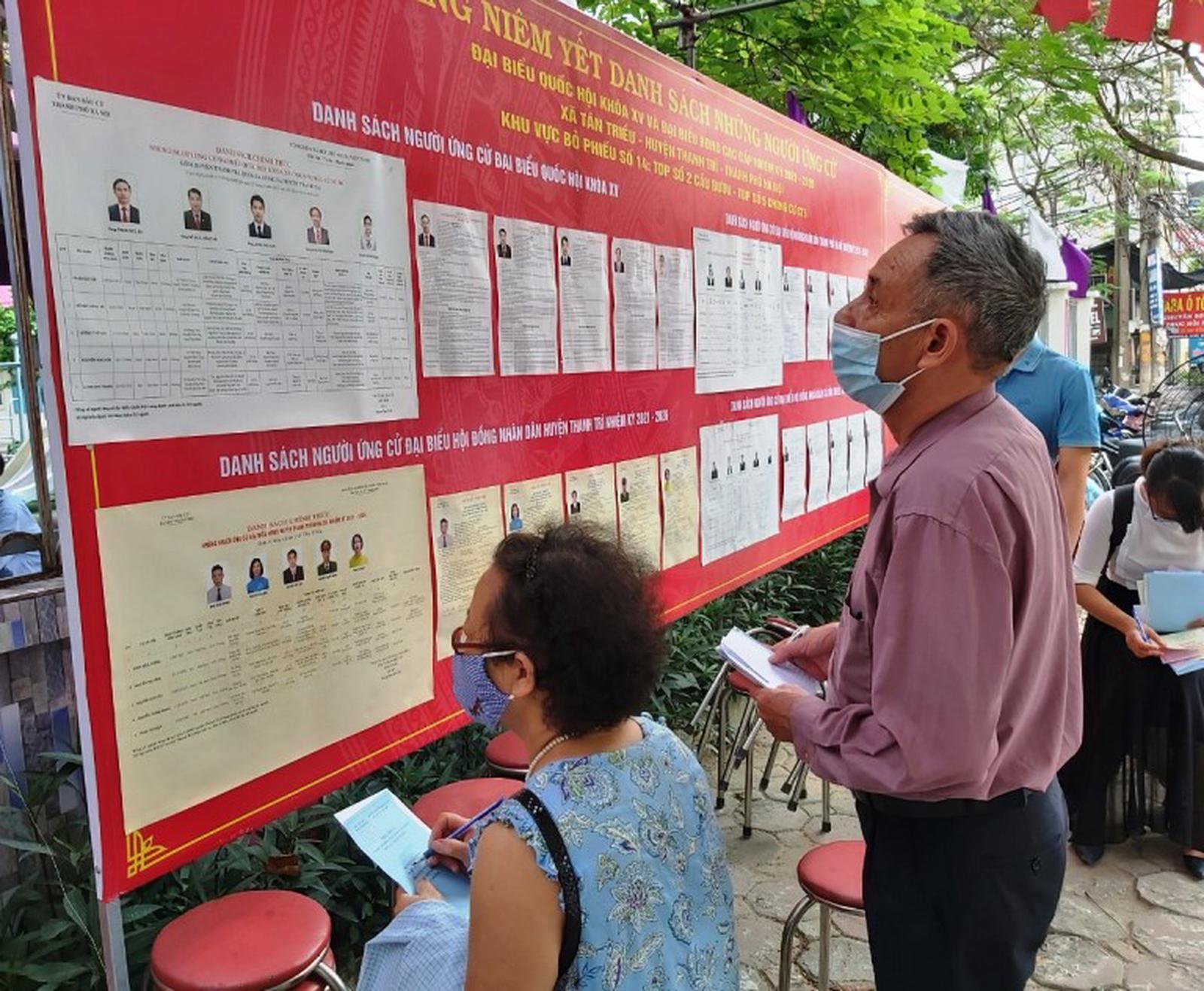 Cử tri dành nhiều thời gian đển nghiên cứu danh sách ứng viên đại biểu Quốc hội và HĐND các cấp. Ảnh: HH