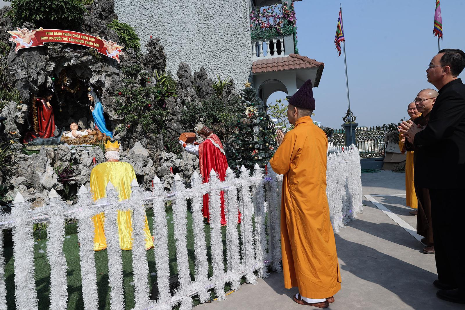 Hoà thượng Thích Thanh Quyết cho rằng, ngày Chúa Giáng sinh cũng như ngày Đức Phật Đản sinh đều mang sứ mệnh cao cả là hoà bình đến cho nhân loại. Ảnh: TV