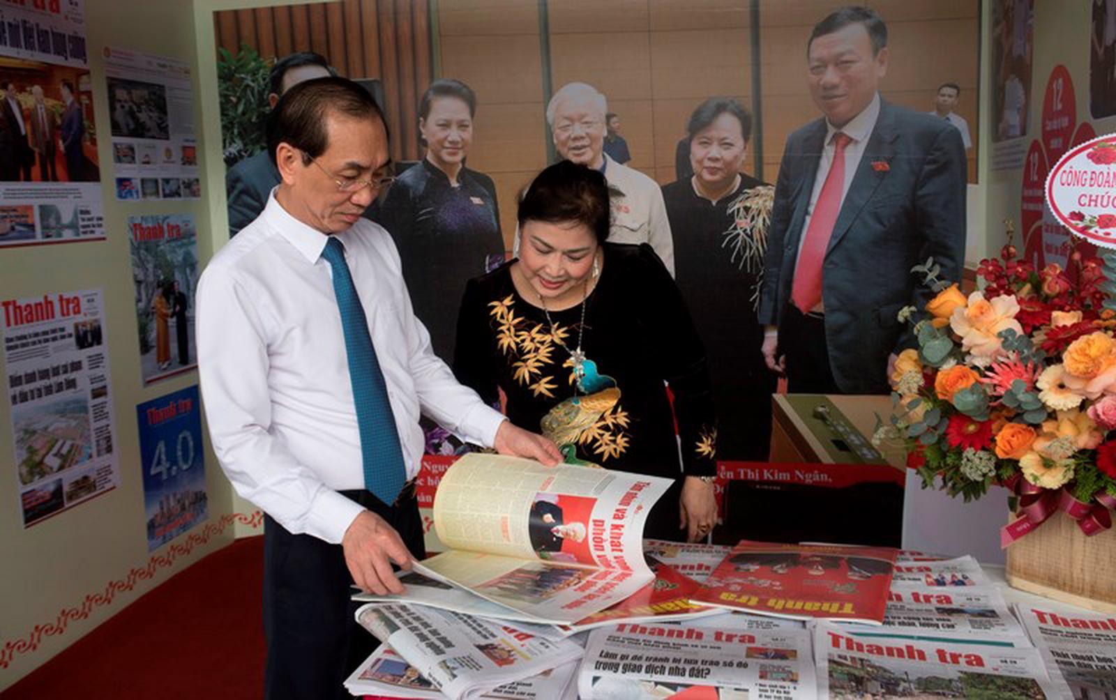 Phó Thủ tướng Vũ Đức Đam thăm gian trưng bày của Báo Thanh tra. Ảnh: T.N