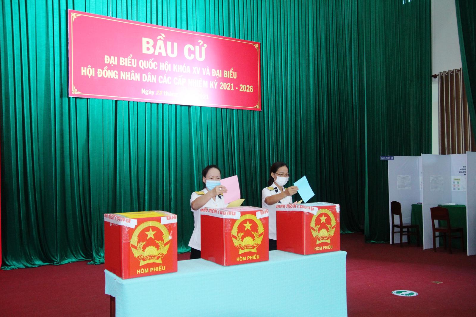 6 giờ 30 phút sáng ngày 23/5, hàng ngàn cán bộ chiến sĩ Lữ đoàn Tàu săn ngầm 171 Vùng 2 (Quân chủng Hải quân) phấn khởi, náo nức đi bầu cử. Tất cả được quán triệt và chấp hành nghiêm ngặt qui định giãn cách, thực hiện “5K” trong quá trình bầu cử.