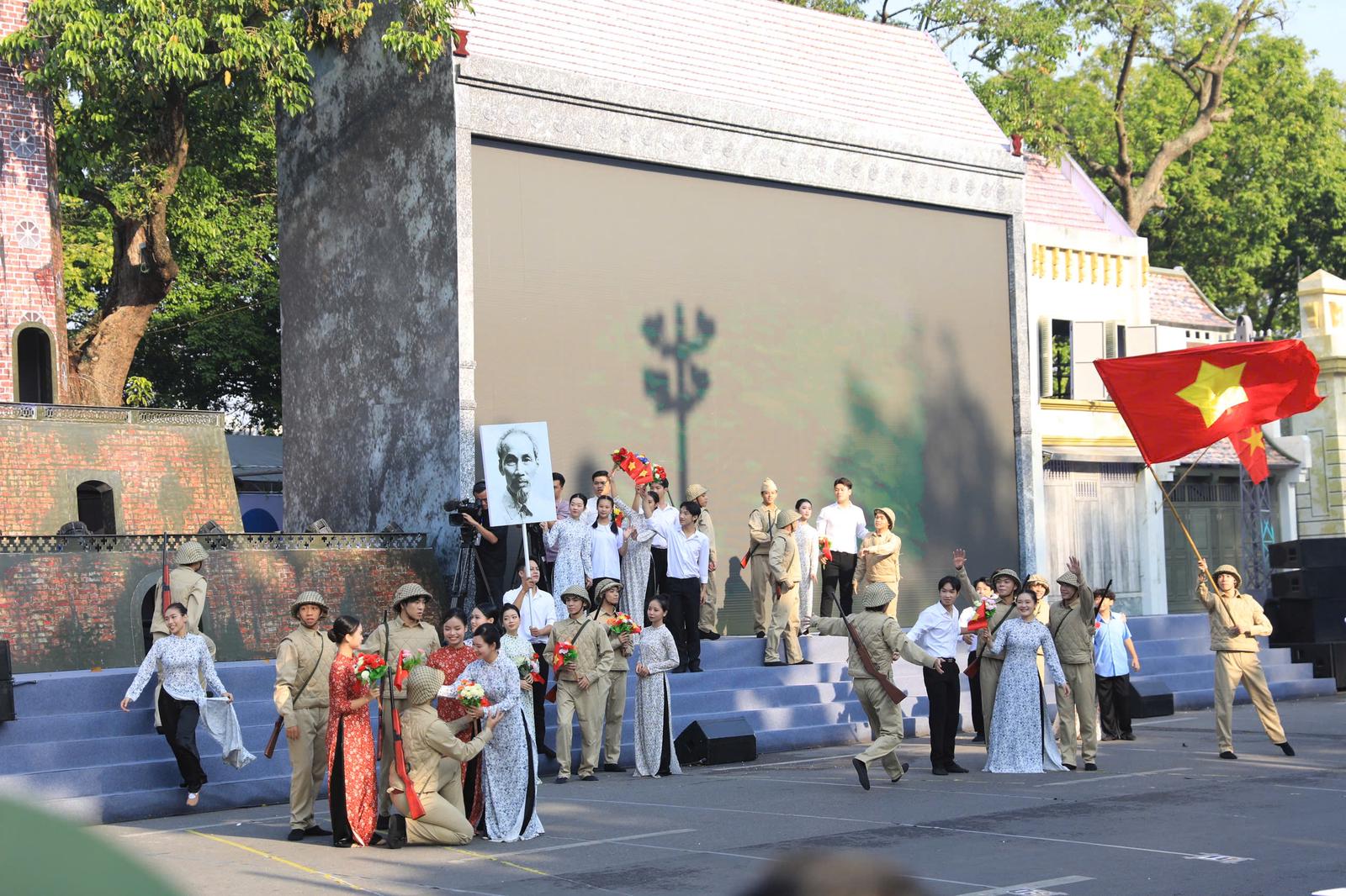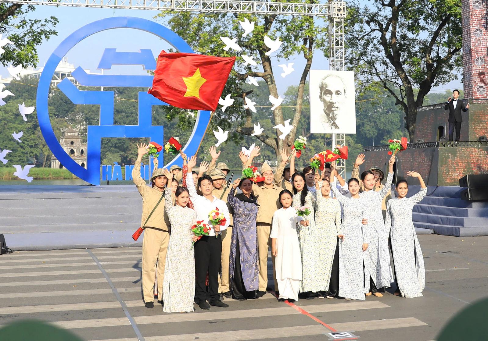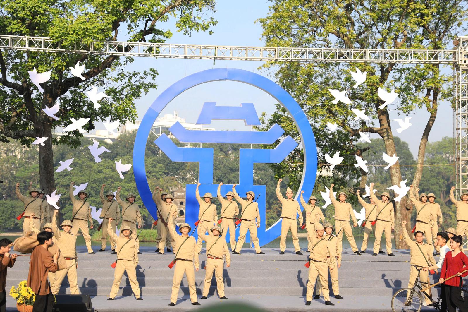 Ngày hôm nay, hình ảnh đoàn quân tiến về tiếp quản Thủ đô trong rợp trời cờ, hoa và niềm hân hoan chiến thắng một lần nữa được tái hiện. Tiết mục đã mang tới những cảm xúc hùng tráng, đầy thiêng liêng về thời khắc lịch sử hào hùng của dân tộc, khi Thủ đô Hà Nội chính thức được giải phóng.