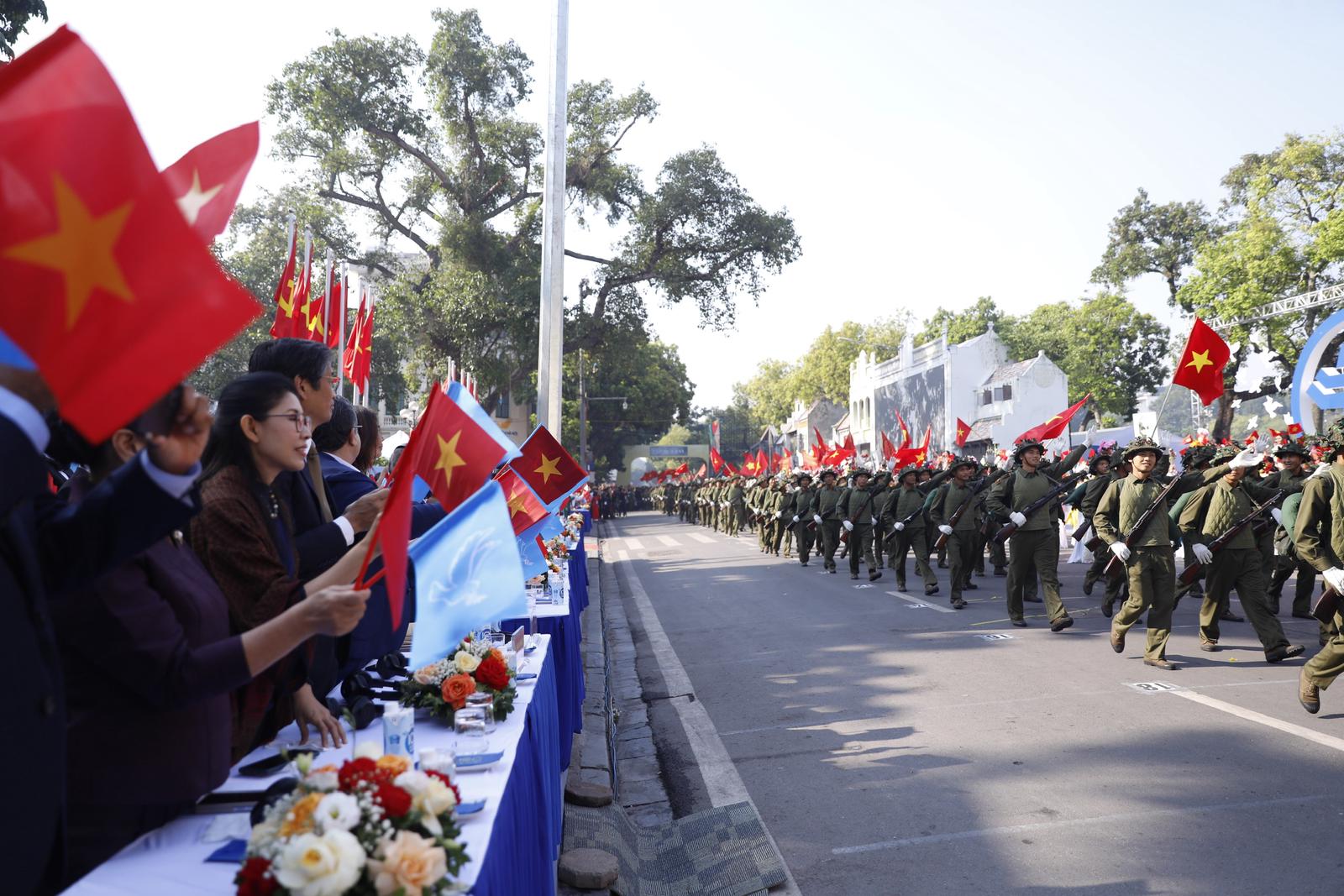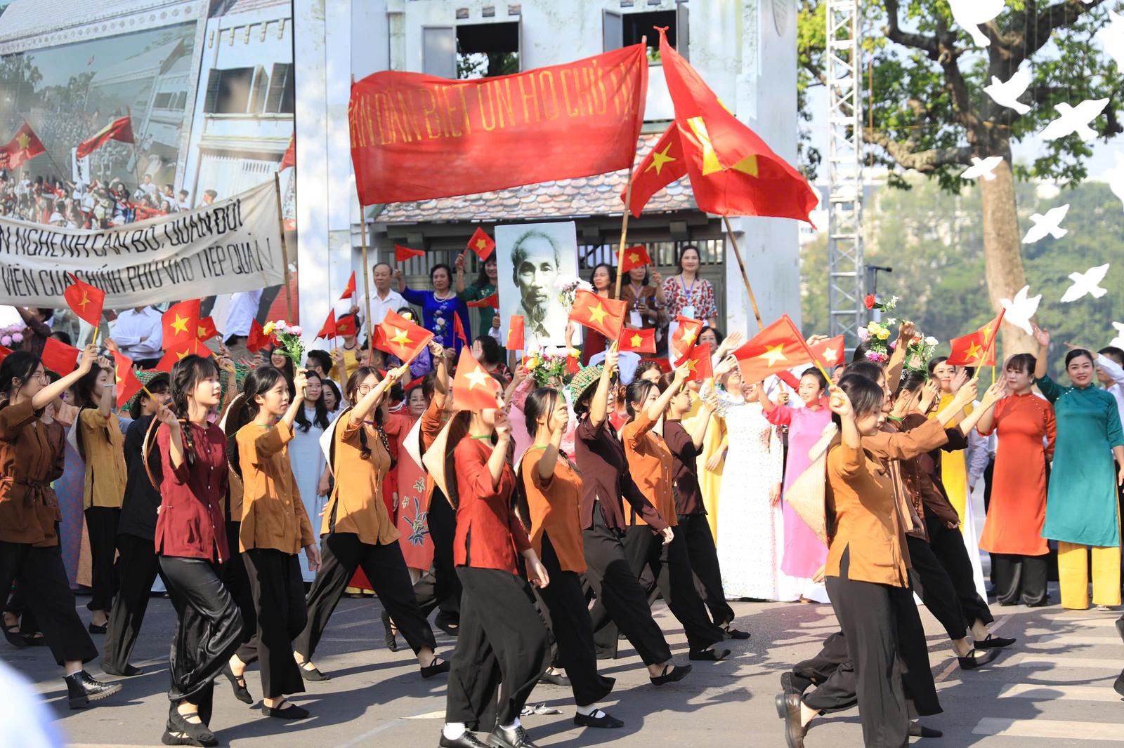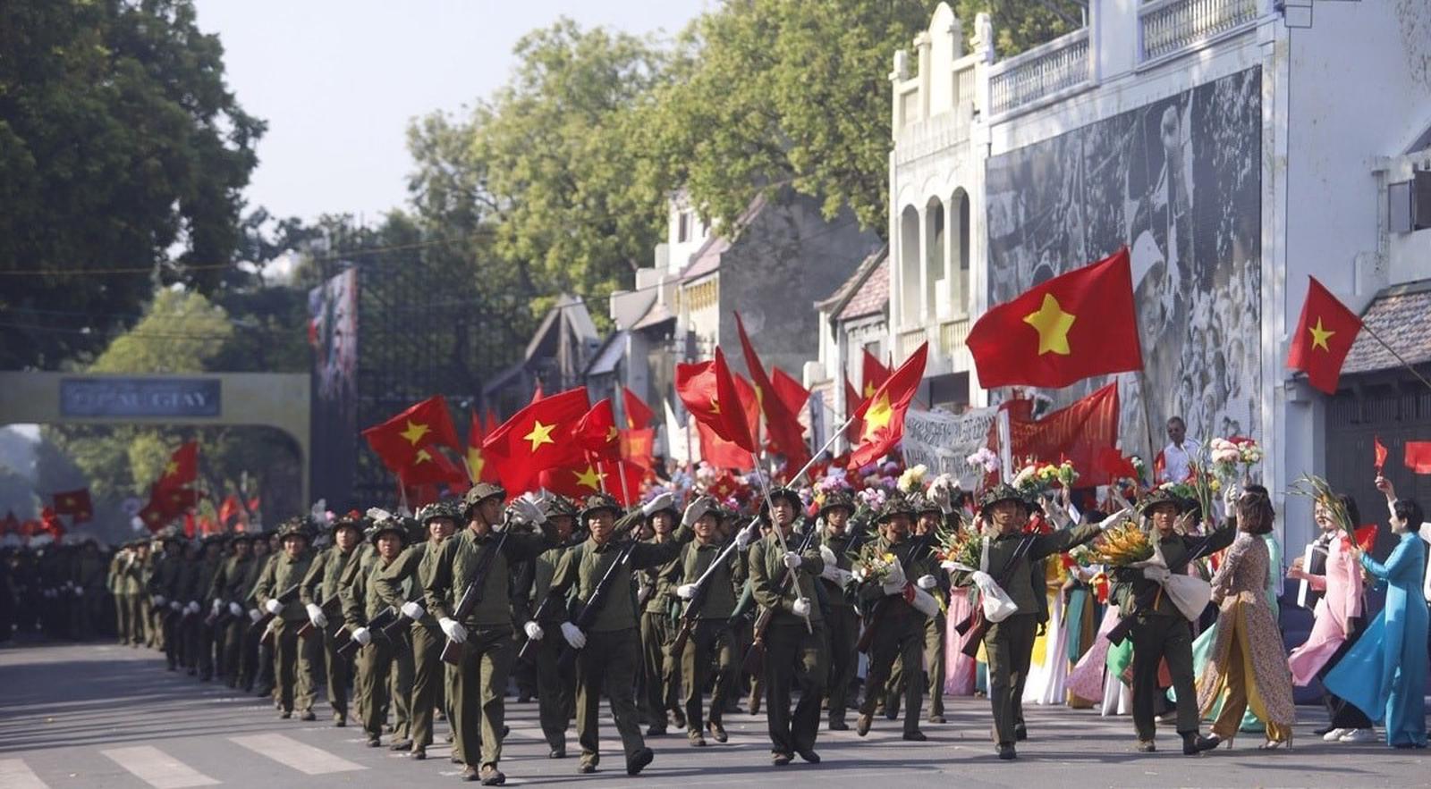 Ngày hôm nay, hình ảnh đoàn quân tiến về tiếp quản Thủ đô trong rợp trời cờ, hoa và niềm hân hoan chiến thắng một lần nữa được tái hiện. Tiết mục đã mang tới những cảm xúc hùng tráng, đầy thiêng liêng về thời khắc lịch sử hào hùng của dân tộc, khi Thủ đô Hà Nội chính thức được giải phóng.