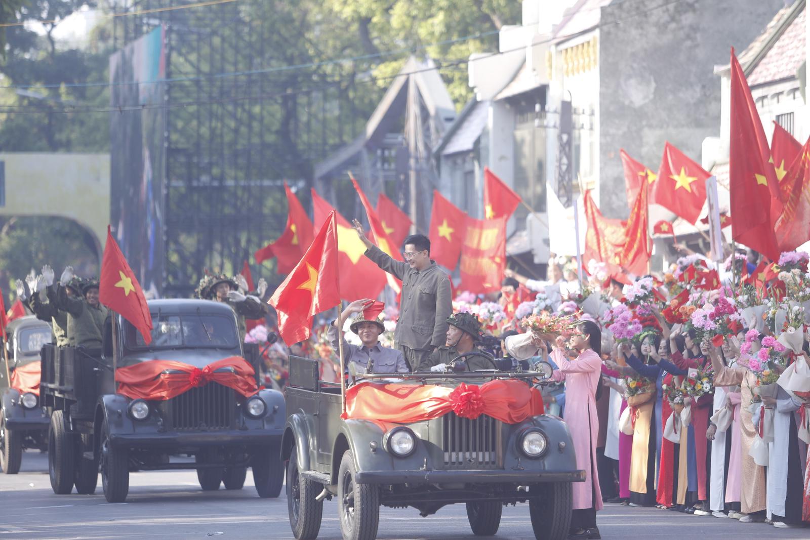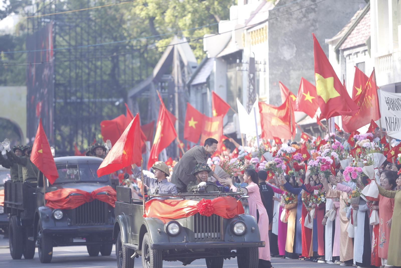 Thực cảnh tái hiện lịch sử “Ngày về chiến thắng” đã mang tới những cảm xúc hùng tráng, đầy thiêng liêng về thời khắc lịch sử hào hùng của dân tộc, khi Thủ đô Hà Nội chính thức được giải phóng. Ảnh: HH