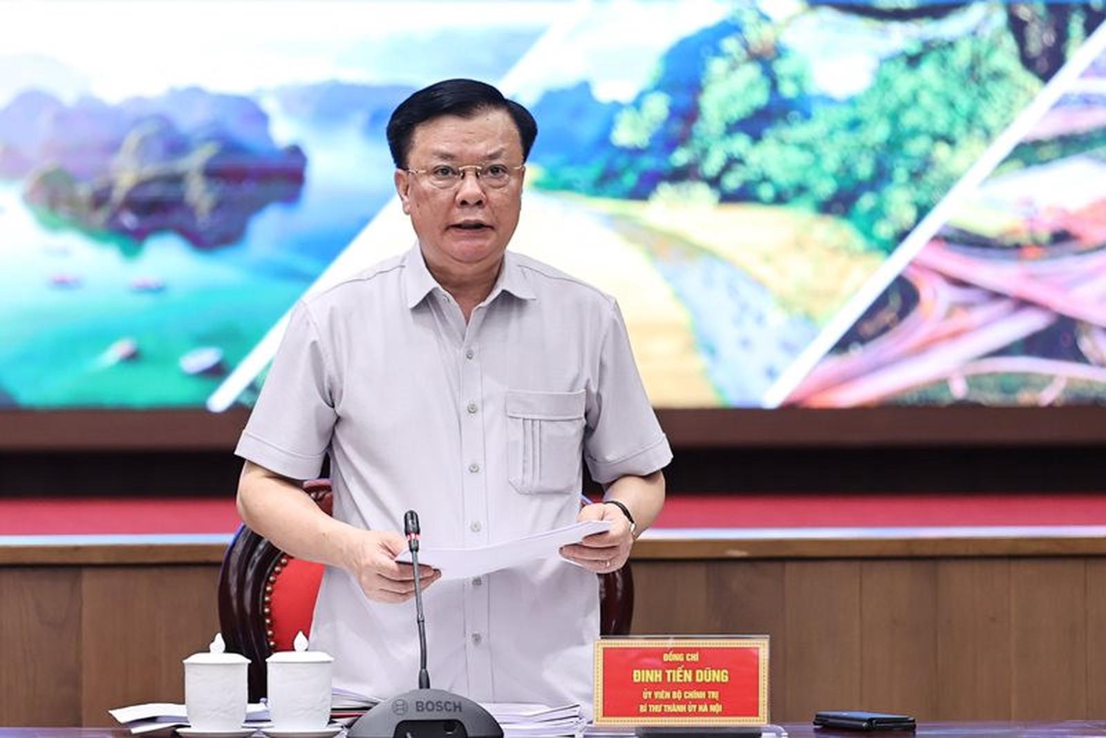 Bí thư Thành ủy Hà Nội Đinh Tiến Dũng phát biểu tại hội nghị. Ảnh: V.T