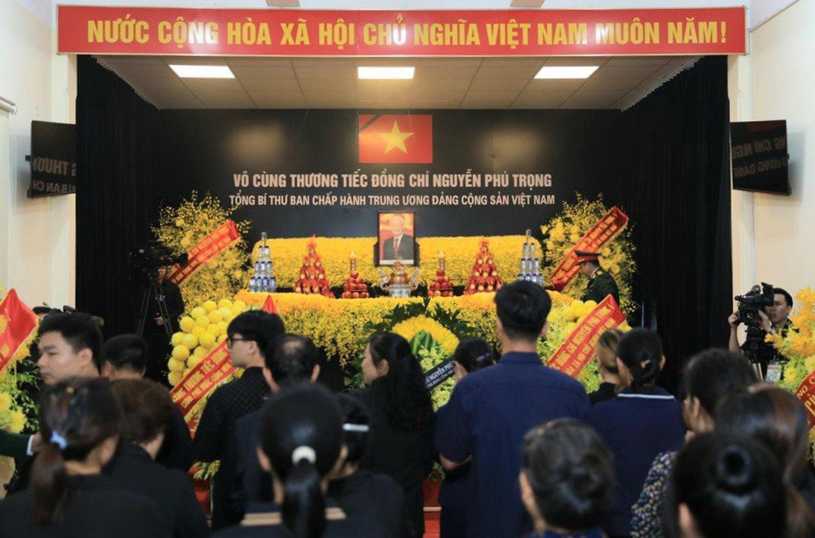 Đoàn Đại biểu Thành ủy - HĐND - UBND - Ủy ban MTTQ Việt Nam Thành phố Hà Nội, do Phó Bí thư Thành ủy Nguyễn Văn Phong làm Trưởng đoàn, đã vào viếng Tổng Bí thư Nguyễn Phú Trọng tại Nhà Văn hóa thôn Lại Đà, xã Đông Hội, huyện Đông Anh.