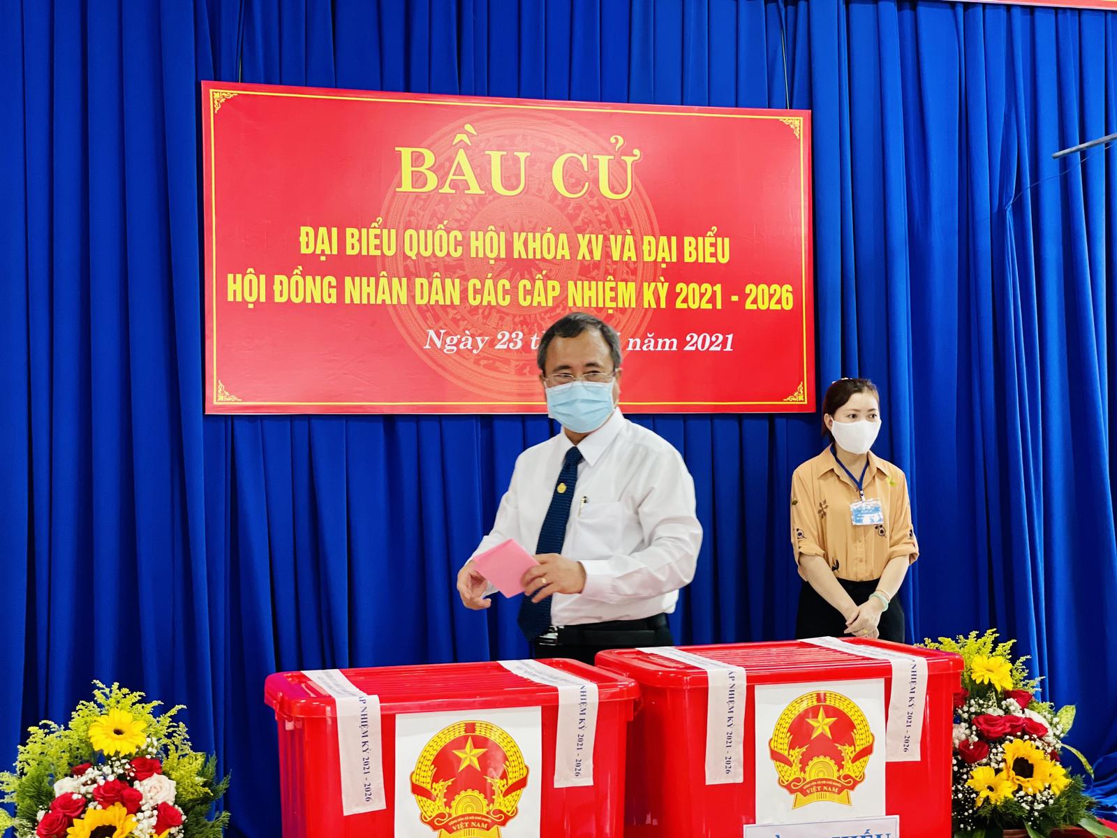 Sau đó, đông đảo cử tri đã lần lượt tiến hành bỏ phiếu để chọn những người ứng cử có đức, có tài bầu vào Quốc hội khoá XV và HĐND tỉnh, HĐND thị xã, HĐND xã nhiệm kỳ 2021 - 2026.